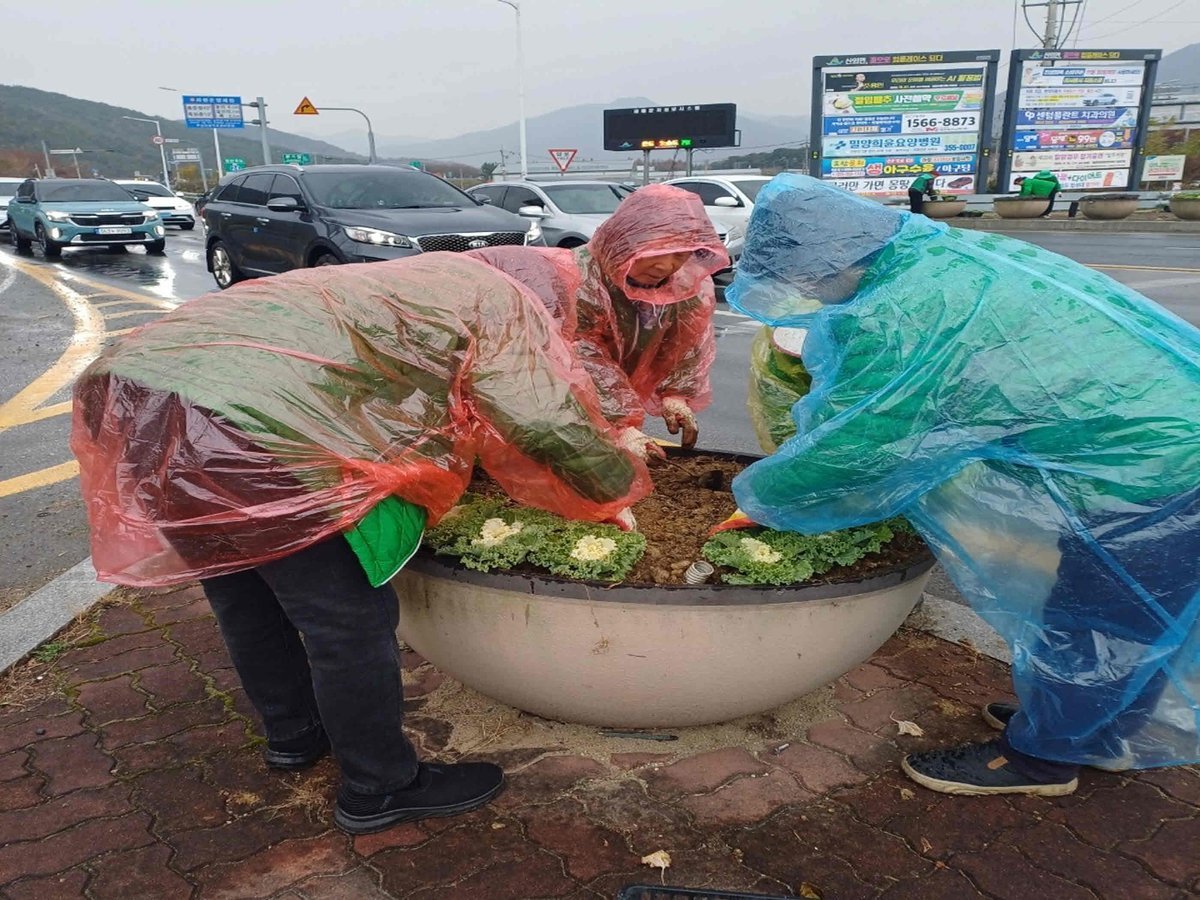 산외면, 새마을부녀회와 겨울꽃 식재 (밀양시 제공) [PEDIEN] 밀양시 산외면이 새마을부녀회와 손잡고 겨울철 아름다운 경관 조성에 나섰다.산외면은 27일 새마을부녀회 회원들과 함께 행정복지센터와 긴늪사거리 화단에 꽃양배추 600본을 심었다. 이번 활동은 겨울에도 산외면을 찾는 이들에게 활기찬 분위기를 선사하기 위해 마련됐다.궂은 날씨에도 불구하고 12명의 부녀회원들은 꽃양배추를 심으며 구슬땀을 흘렸다. 특히 밀양 시내 관문인 긴늪사거리에 꽃양배추를 심어 차량 통행이 많은 지역에 생기를 불어넣었다.손영미 산외면장은 “사계절 아름다운 환경을 제공하여 주민과 방문객 모두가 산외면의 따뜻함을 느끼도록 하겠다”고 말했다. 덧붙여 “앞으로도 다양한 계절 꽃을 심어 활력이 넘치는 산외면을 만들어갈 것”이라고 밝혔다. -