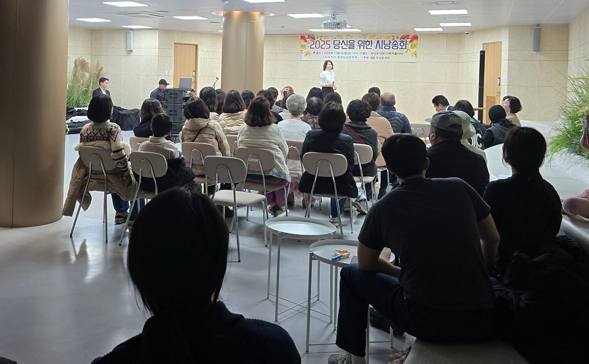 상남도서관, ‘당신을 위한 시낭송회’성황리 개최 (창원시 제공) [PEDIEN] 창원 상남도서관이 지난 26일 저녁, '당신을 위한 시낭송회'를 성공적으로 개최하며 늦가을 밤을 아름다운 시와 음악으로 물들였다.이번 행사는 지역에서 활발히 활동하는 창원낭송문학회 회원들이 참여하여 더욱 풍성한 무대를 선보였다. 15명의 회원은 도종환의 '내가 사랑하는 당신은', 이정하의 '길 위에서' 등 다양한 시를 낭송하며 관객들에게 깊은 감동을 선사했다.특히 김효경 회원의 창작시 '엄마의 ‘이별’노래'는 진솔한 감성으로 큰 호응을 얻었다. 시 낭송 외에도 성악 공연과 통기타 연주가 더해져 다채로운 볼거리를 제공했다.상남도서관은 이번 시낭송회가 시민들에게 문학과 예술을 더욱 가까이에서 즐길 수 있는 기회를 제공했다고 평가했다. 강문선 성산도서관과장은 앞으로도 시민들을 위한 다양한 문화 프로그램을 지속적으로 운영할 계획이라고 밝혔다.이번 행사는 늦가을의 정취를 만끽하고 싶은 시민들에게 잊지 못할 추억을 선사하며 마무리되었다. -