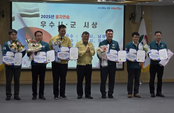 고성군, 2025년 을지연습 경남도 종합평가 우수기관 수상 [PEDIEN] 고성군이 경상남도가 주관한 2025년 을지연습 종합평가에서 군부 우수기관으로 선정됐다고 밝혔다. 이번 평가는 지난 8월 18일부터 21일까지 전국적으로 시행된 을지연습 기간 중 경상남도 내 시·군을 대상으로 진행됐다. 평가단은 전시종합상황실 운영, 전시 창설기구 운용, 도상연습, 실제훈련, 기관별 참여도 등 국가 위기관리 및 총력전 대응 연습 전반을 종합적으로 심사했다. 특히 고성군은 민·관·군·경의 유기적인 협조와 신속한 통합 대응체계 확립을 위해 고성군국민체육센터에서 실시한 ‘다중이용시설 테러 대응 실제훈련’에서 좋은 평가를 받았다. 군은 이번 실제훈련을 통해 급변하는 안보 위협 속에서 국가비상사태 대응 역량을 한층 강화했다는 평가를 받았다. 또한, 민방위 대피훈련과 연계해 실시한 시범훈련에서는 고성소방서의 심폐소생술 실습 교육과 고성군 여성민방위기동대의 방독면 착용 시연이 진행되어 군민들로부터 큰 호응을 얻었다. 이상근 고성군수는 “비상사태 시 군민의 생명과 안전을 지키기 위한 필수 훈련이 바로 을지연습”이라며 “이번 우수기관 수상을 계기로 고성군의 위기관리 역량을 더욱 체계적으로 발전시켜 나가겠다”고 말했다. -