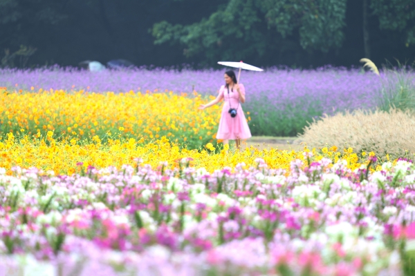 가을비 속 꽃구경 [PEDIEN] 가을비가 내린 7일 경남 함양군 상림경관단지에서 꽃구경을 나온 관광객이 우산을 받쳐 들고 만개한 가을꽃을 구경하며 즐거운 시간을 보내고 있다. -