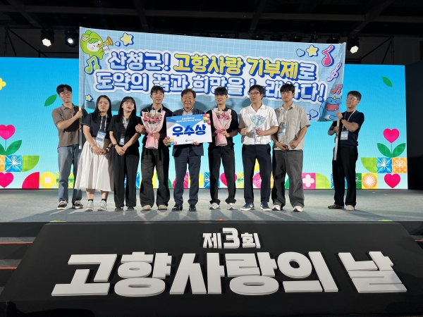 산청군, 고향사랑기부제 우수사례 경진대회 ‘우수’ [PEDIEN] 산청군은 ‘제2회 고향사랑기부제 우수사례 경진대회’에서 우수상을 수상했다고 8일 밝혔다. 지난 4일 충북 청주시 오스코에서 행정안전부 주최로 열린 이번 행사는 고향사랑기부제도 운영 전반에서 가장 우수한 성과를 보인 지자체를 선발하는 대회다. 산청군은 ‘고향사랑기부제로 도약의 꿈과 희망을 노래하다’라는 주제로 본선에 올라 현장 발표와 심사를 거쳐 우수상에 최종 선정됐다. 특히 △고향사랑기부제 모금 현황 및 홍보 노력 △지역 농특산물과 연계한 산청군만의 차별화된 답례품 구성 △지역맞춤형 고향사랑기금사업 추진 등이 우수한 평가를 받았다. 또 산청군 청소년 관악합주단 후원사업은 청소년에게 음악의 꿈과 희망을 지원하고 인구 소멸 문제 해결에도 기여했다는 평가다. 이에 따라 행정안전부장관 기관표창과 함께 특별교부세 등 인센티브를 받게 된다. 산청군은 지속적인 제도 홍보와 모금 노력 등을 통해 총 11억원의 고향사랑기부금을 달성했으며 지역문제를 해결할 수 있는 기금사업 발굴과 더 적극적인 제도 홍보에 적극 노력한다는 방침이다. 이승화 산청군수는 “이번 수상은 기부자들의 따뜻한 마음이 모여 만들어낸 결과’라며“앞으로도 지속 가능한 지역 발전과 지역문제 해결을 위한 특색있는 기금사업 발굴에 더욱 힘쓰겠다”고 말했다. 한편 산청군 청소년 관악합주단 후원사업은 지난 2017년 설립된 산청군 청소년관악합주단의 부족한 악기와 연주회 및 대회비용을 지원한다. 지난해 6월부터 고향사랑기부제 지정기부 모금을 추진 지난 7월에 합주단의 악기구입과 정기연주회 비용 등 총 3000만원을 지원했다. 산청군은 이 사업과 함께 ‘초등학교 입학축하금 지원사업’을 통해 현재까지 총 29명에게 지원을 완료한 바 있다. -