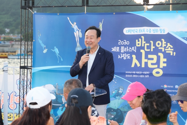통영시, 제로 플라스틱 사량도 ‘바다 약속, 사량’ 개최 [PEDIEN] 통영시는 지난 6일 경남도와 통영시 지속가능발전협의회 공동 주관으로 대한민국 최대 규모의 수중정화활동 ‘바다 약속, 사량’을 성황리에 개최했다. 이번 행사는 해양오염과 지역소멸 위기에 맞선 사량도 주민들의 담대한 계획인‘2030 제로 플라스틱 사량도’ 실현을 가속화하고 미래 세대에게 깨끗한 바다를 물려주겠다는 약속을 실천하기 위한 것으로 전국 각지에서 자발적으로 찾아온 다이버 및 수상안전관리자 등 300여명이 참여한 가운데 진행됐다. 185명의 다이버들은 진촌앞바다 2개 구역으로 나눠 수중정화활동을 펼쳤다. 지속가능발전 포럼 참가자 100여명 및 다이버 가족들은 주변 해안가와 둘레길을 걸으며 쓰레기를 줍는 등 ‘제로 플라스틱 사량도’에 일손을 보탰다. 통영시는 행사 안전을 최우선으로 소방서 해경 등 각종 유관기관 협조와 안전관리계획 검토 및 인력 지원, 그리고 해양쓰레기 수거를 위한 통영아라호 운항 지원까지 원활한 행사 진행을 위해 행정적 지원을 아끼지 않았다. 수중정화활동에 참여한 다이버들은 “오늘 건져올린 해양쓰레기 중 폐어구와 낚시쓰레기가 가장 많았고 ”며 “일상 속 플라스틱 사용을 줄여야겠다는 생각이 들었으며 내년에도 이런 행사가 열린다면 또 참여할 것”이라고 말했다. 천영기 시장은 “오늘 사량도까지 찾아와 수중정화활동을 펼쳐주신 전국의 다이버들과 물심양면으로 지원해주신 사량수협, 무학 등 후원기관들에게 진심으로 감사드린다”며 “오늘 활동이 단순한 수거에 그칠 것이 아니라 해양쓰레기 문제의 심각성을 깨닫고 우리 모두가 실천할 수 있는 지속가능한 약속의 계기가 되길 바란다”고 전했다. 한편 경상남도 및 통영시 지속가능발전협의회는 이번 행사를 통해 해양생태계 보전의 중요성을 널리 알리고 시민이 함께 참여하는 지속가능발전 실천운동을 확산시키는 계기가 될 것으로 기대하고 있으며 이를 더욱 발전시켜서 아시아를 넘어 세계 최대 규모의 다이버 수중정화활동 개최를 목표로 하고 있다. -