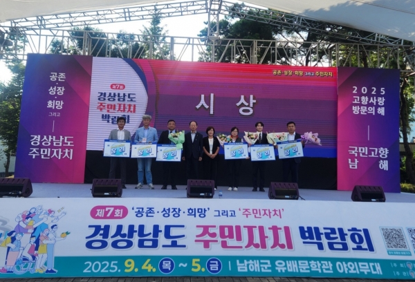 거창군 주민자치회, ‘제7회 경상남도 주민자치 박람회’ 참가 [PEDIEN] 거창군 주민자치회는 지난 4일부터 5일까지 이틀간 남해군 유배문학관 야외무대에서 열린 ‘제7회 경상남도 주민자치 박람회’에 참가했다고 밝혔다. 양일간 12개 읍·면 주민자치위원들은 주민자치 우수사례 발표와 우수동아리 경연대회, 우수작품 전시, 홍보부스 운영 등에 참가해 거창군 주민자치 우수성을 알리기에 나섰다. 첫째 날은 주민자치 우수사례 경진대회에서 거창읍과 북상면이 장려상을 수상했으며 둘째 날인 5일에는 주민자치 우수동아리 경연대회에서 마리면 경기민요팀이 장려상을 수상하는 쾌거를 이뤘다. 또한, 주민자치 활성화에 기여한 공으로 이승우 마리면 주민자치회장이 도지사 표창을 수상했다. 이번 박람회에 참가한 한 주민자치위원은 “다양한 주민자치 활동 사례들을 벤치마킹 할 좋은 기회가 됐다”며 “우수사례를 보고 거창군 주민자치회가 한 단계 더 성장하는 계기가 되었으면 좋겠다”고 말했다. 김덕선 연합회장은 “바쁜 일상에서 주민자치 박람회에 참석해 주신 읍면 주민자치위원님들에게 진심으로 감사드린다”며 “앞으로도 풀뿌리 민주주의 실현을 위해 거창군 주민자치가 성장하고 발전할 수 있도록 노력하겠다”고 전했다. -