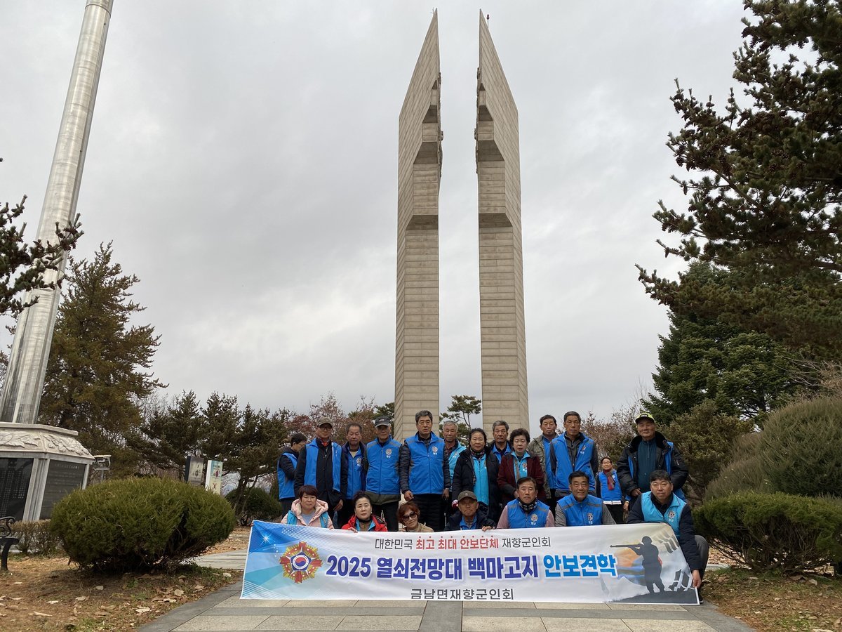 금남면 재향군인회, 안보 현장 견학 실시 (하동군 제공) [PEDIEN] 금남면 재향군인회가 지난 11월 29일부터 30일까지 회원들과 함께 안보 현장 견학을 진행했다. 이번 견학에는 지역 재향군인회 회원 및 여성회원 총 26명이 참여했다.견학단은 첫날, 경기 연천에 위치한 육군 5사단 열쇠전망대를 방문했다. 이곳에서 비무장지대와 6.25 전쟁 전적지를 살펴보며 분단 현실을 직접 마주하고, 국가관과 안보관을 확고히 하는 시간을 가졌다.이어 강원 철원의 백마고지 전적 기념관을 찾아 6.25 전쟁의 상흔을 느꼈다. 백마고지는 육군 9사단이 중공군 3개 사단과 12차례의 치열한 공방전 끝에 승리한 전략적 요충지다.참가자들은 격전의 역사를 되짚으며 나라를 위해 희생한 선배 영웅들에게 묵념으로 존경과 감사를 표했다. 한 참가자는 “일반인은 쉽게 갈 수 없는 곳을 방문하게 되어 매우 뜻깊었다”고 소감을 밝혔다.이삼승 금남면 재향군인회장은 “이번 안보 견학은 호국 정신과 안보 의식을 고취하고 국가관을 함양하는 데 목적이 있다”고 말했다. 덧붙여 “재향군인회의 일원으로서 국가와 국민의 안보를 위해 더욱 노력하겠다”고 강조했다.