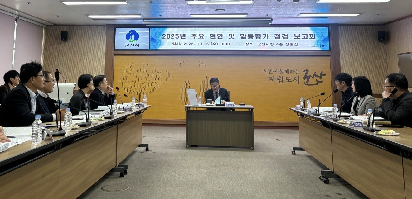 기획예산과 2025년주요현안및합동평가추진상황점검보고회(군산시 제공) [PEDIEN] 군산시가 연말까지 주요 현안 사업의 성과를 극대화하기 위해 추진 상황을 집중적으로 점검했다.시는 11월 5일부터 6일까지 '2025년 주요 현안 및 합동평가 추진상황 점검 보고회'를 개최, 39개 주요 현안 사업과 18개 미달성 합동평가 지표를 꼼꼼히 살폈다.이번 보고회는 올해 들어 세 번째로 연내 가시적인 성과를 창출하고 주요 과제를 마무리하기 위해 마련됐다.특히 미래 성장을 견인할 핵심 사업과 시민 생활과 밀접한 생활밀착형 과제들이 중점적으로 논의됐다.기업 유치, 산업단지 조성, 항만 및 교통 인프라 확충 등 지역 산업 활성화 과제 추진 상황을 점검하고 이차전지, 재생에너지 등 신성장 산업 생태계 조성을 위한 부서 간 협력 방안을 구체화했다.시는 합동평가 실적이 부진한 지표에 대해서는 원인을 분석하고 개선 대책을 모색했다.보고회 이후에도 연말 평가 마감 전까지 세부 이행 일정을 주 단위로 관리해 모든 지표 달성을 목표로 행정 역량을 집중할 계획이다.김영민 부시장은 “주요 현안과 합동평가 지표는 시민의 삶과 직결되며 행정 신뢰를 가늠하는 척도”며, “올해 남은 기간은 물론 내년도 사업까지 흔들림 없이 추진해 시민이 체감하는 변화를 만들어가겠다”고 밝혔다.군산시는 이번 보고회를 통해 각 사업의 실행력을 높이고 2026년 국정과제 및 정부 정책 방향과 연계한 사업 발굴에도 박차를 가할 예정이다.시는 앞으로도 성과 중심의 행정체계를 더욱 강화해 나갈 방침이다. -