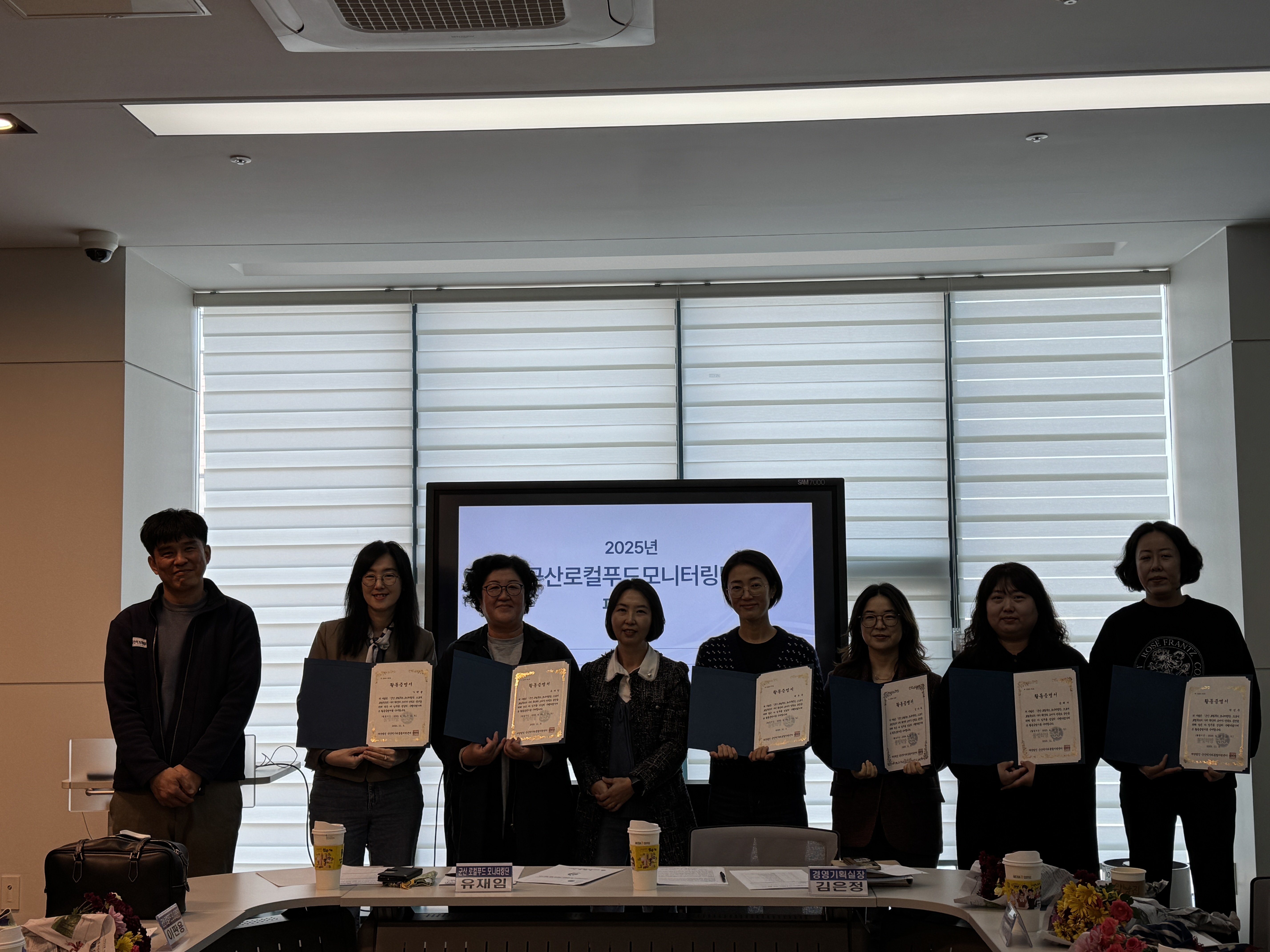 먹거리정책과 군산로컬푸드모니터링단평가회1 (군산시 제공) [PEDIEN] 군산먹거리통합지원센터는 지난 5일 로컬푸드 모니터링단 평가회를 열고 1년간의 활동을 마무리했다.이번 평가회는 모니터링단 참여자와 로컬푸드 직매장 관계자들이 참석해 2025년 모니터링 활동을 되돌아보고 로컬푸드 직매장의 활성화 및 개선 방안을 논의하는 자리로 마련됐다.참석자들은 그동안의 모니터링 활동이 직매장 개선과 소비자 만족도 향상에 긍정적인 영향을 미쳤다고 평가했다.동시에 모니터링 활동에서 느꼈던 아쉬운 점과 직매장 운영상의 문제점에 대한 의견도 공유하며 개선점을 모색했다.특히 참석자들은 향후 모니터링단 활동의 체계적인 기록과 평가를 위해 모니터링 활동 자료집을 제작하고 소감문을 작성하기로 했다.평가회에 참여한 모든 이들에게는 활동 증명서가 수여됐으며 기념사진 촬영도 진행됐다.이창한 군산먹거리통합지원센터장은 “로컬푸드 모니터링단이 소비자들의 관심을 유도하고 지역 농산물 소비를 촉진하는 데 중요한 역할을 했다”고 평가하며 “앞으로도 군산 로컬푸드 직매장이 지역 주민들의 참여와 관심을 더욱 확대할 수 있도록 지속적으로 노력하겠다”고 밝혔다.한편 2025년 로컬푸드 모니터링단은 단장을 포함해 총 7명으로 구성되어 4월부터 11월 초까지 활동했다.이들은 총 4회의 매장 모니터링을 통해 군산로컬푸드직매장과 군산로컬푸드복합센터의 개선 사항을 제안했다.또한, 세종 로컬푸드 싱싱장터 소담점을 방문하고 직매장 농산물 생산지를 견학해 운영 방식, 품질 관리, 마케팅 전략, 생산 과정 등을 벤치마킹하며 군산 로컬푸드 직매장 개선 방안을 모색했다.뿐만 아니라, 모니터링단 활동 경험을 바탕으로 체험기를 작성하고 로컬푸드의 가치를 알리는 블로그 게시글을 작성하기도 했다. -