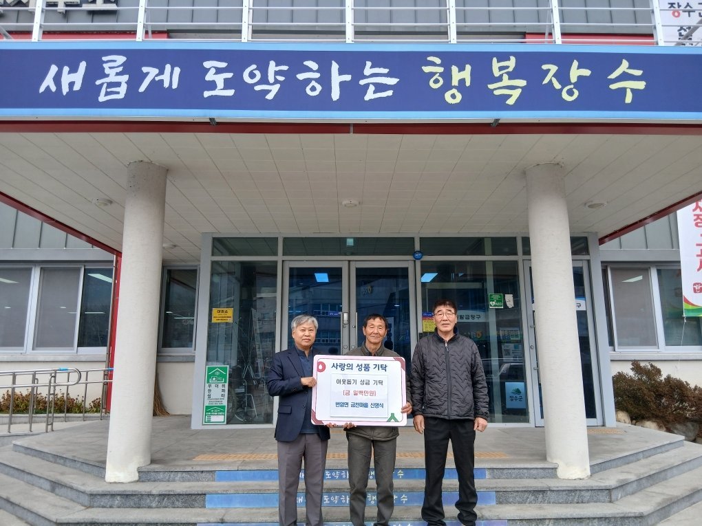 장수군 번암면, 연말 맞아 개인 기탁 이어지며 나눔 온기 확산 (장수군 제공) [PEDIEN] 장수군 번암면에 따뜻한 나눔의 손길이 이어지고 있다.금천마을에 거주하는 신영식 씨가 연말을 맞아 어려운 이웃을 돕기 위해 100만원을 번암면사무소에 기탁했다. 신 씨의 기부는 과거의 아픔을 이겨내고 이웃 사랑을 실천했다는 점에서 더욱 의미가 깊다.신 씨는 6.25 전쟁 당시 부모를 잃고 힘든 시간을 보냈다. 무연고자로 외롭게 지내면서 어려운 이웃에 대한 안타까운 마음을 항상 품고 있었다.신 씨는 금천마을 이장과 함께 면사무소를 방문해 성금을 전달하며 따뜻한 마음을 전했다. 그는 “어려움을 겪는 이웃들에게 작은 위로가 되길 바란다”고 말했다.김성은 번암면장은 “신영식 씨의 나눔에 깊이 감사드린다”며 “자발적인 나눔이 지역사회를 더욱 끈끈하게 만들 것”이라고 밝혔다.이번 성금은 번암면 지역사회보장협의체를 통해 취약계층 지원에 사용될 예정이다. 신 씨의 따뜻한 마음은 어려운 이웃들에게 큰 힘이 될 것으로 기대된다. -