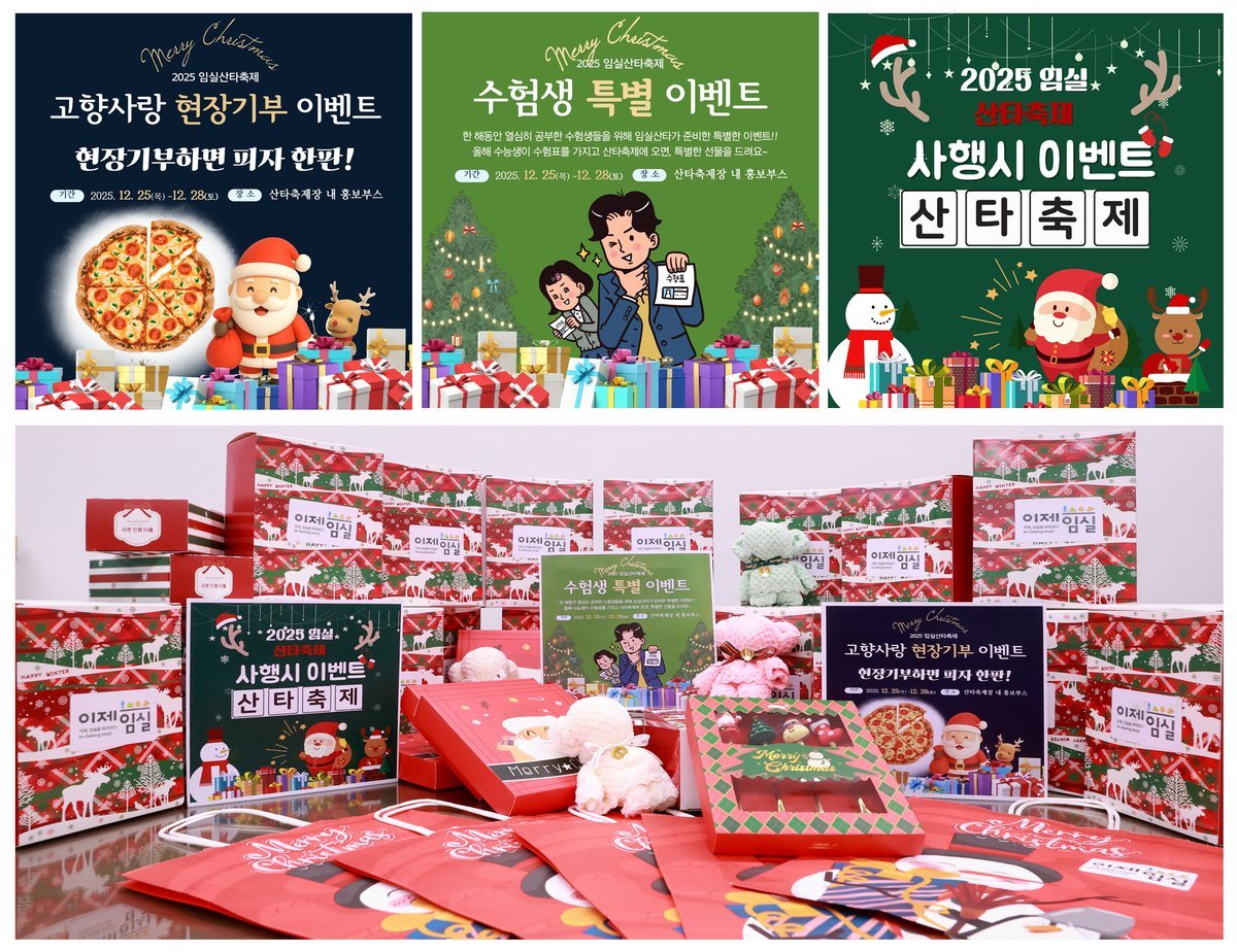 임실 산타축제,“너무 고생했어요”…불수능 수험생 특별선물 와르르 (임실군 제공) [PEDIEN] 임실 산타축제가 올해 수능을 치른 수험생들을 위한 특별한 선물을 준비했다. 25일부터 28일까지 임실치즈테마파크에서 열리는 축제 기간 동안 수험생들은 다채로운 혜택을 누릴 수 있다.홍보담당관 부스에서는 수험표를 제시하는 선착순 100명에게 성탄 선물 세트를 증정한다. 올해 불수능으로 어려움을 겪었던 수험생들을 격려하고 응원하기 위해 마련된 특별 이벤트다.뿐만 아니라, 임실군은 고향사랑기부제와 SNS를 연계한 참여형 이벤트도 진행한다. 축제 현장에서 고향사랑기부에 참여하는 기부자에게는 임실N치즈피자를 추가로 제공한다.온라인 이벤트도 풍성하다. 임실군청 공식 SNS 채널에서는 산타축제 사행시 댓글 이벤트를 통해 아이스크림 상품권을 증정하며, 유튜브와 인스타그램에서는 축제 응원 댓글 이벤트로 커피 쿠폰을 제공한다.임실 산타축제는 60미터 초대형 눈썰매장, 아이스링크 등 겨울 체험 시설과 이보람, 라잇썸, 짜이 등 초청 가수 공연으로 더욱 풍성한 볼거리를 제공한다.다슬기탕, 육개장 등 겨울철 인기 메뉴와 임실치즈 붕어빵, 치즈호떡 등 다양한 먹거리도 준비되어 있다. 임실군은 축제 기간 동안 임실N치즈를 20% 할인된 가격으로 판매하여 지역 농가와의 상생을 도모할 계획이다.심 민 군수는 “임실 산타축제가 현장과 온라인을 통해 많은 사람들에게 즐거움을 선사하고, 임실에 대한 따뜻한 관심과 참여를 이끌어내기를 기대한다”고 밝혔다. -