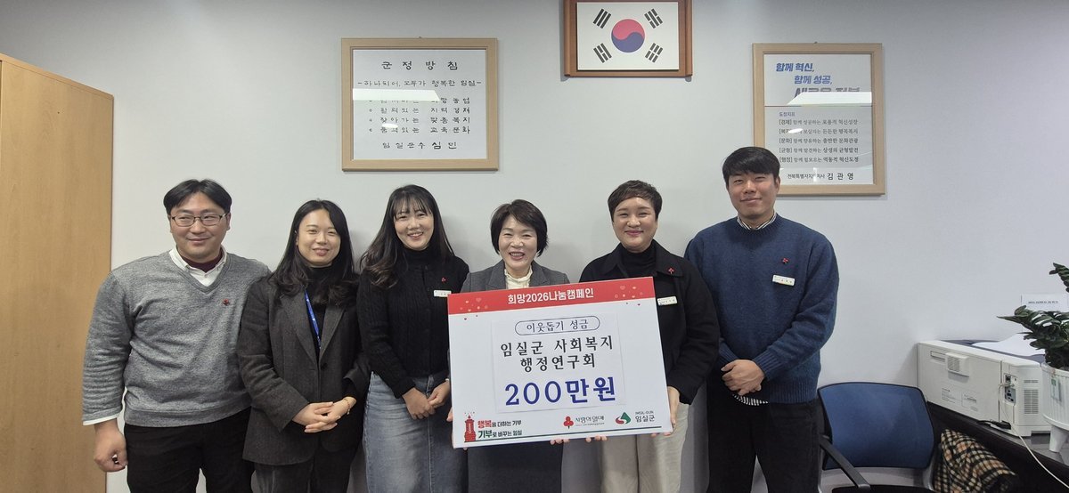 임실군 사회복지 행정연구회, 따뜻한 동행 (임실군 제공) [PEDIEN] 임실군 사회복지직 공무원들의 모임인 ‘임실군 사회복지 행정연구회’가 연말을 맞아 지역 내 어려운 아동들을 위해 200만원의 성금을 기탁했다.35년간 꾸준히 이어진 이들의 따뜻한 행보는 지역사회에 훈훈한 감동을 전하고 있다.이번 기부금은 연구회 회원 56명이 매월 납부하는 회비의 일부를 적립하여 마련되었다. 공직자들이 자발적으로 나눔 문화 확산에 앞장섰다는 점에서 더욱 의미가 깊다.기탁된 성금은 사회복지공동모금회를 통해 관내 취약계층 아동 20명에게 전달될 예정이다. 경제적 어려움 속에서도 아이들이 꿈을 잃지 않고 건강하게 성장할 수 있도록 돕는 ‘희망 사다리’ 역할을 할 것으로 기대된다.올해로 결성 35주년을 맞이한 임실군 사회복지 행정연구회는 복지 사각지대 해소를 위해 노력하는 동시에, 오랜 기간 변함없이 지역사회를 위한 봉사와 기부를 이어오며 공직사회의 귀감이 되고 있다.김미연 임실군 사회복지 행정연구회 회장은 “현장에서 만나는 아이들에게 조금이나마 힘이 되고 싶어 회원들의 마음을 모았다”고 밝혔다. 이어 “앞으로도 전문적인 복지행정 서비스는 물론, 이웃과 함께하는 따뜻한 나눔 활동을 지속해 나가겠다”고 덧붙였다.심 민 임실군수는 “현안 업무로 바쁜 와중에도 이웃사랑을 실천하는 사회복지직 공무원들에게 감사드린다”며 고마움을 표했다. 또한 “기탁된 성금은 아이들이 따뜻한 겨울을 보내는 데 큰 힘이 될 것이다”라고 말했다. -