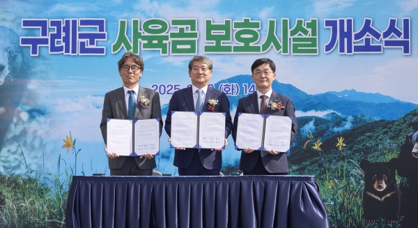 구례군, 사육곰 보호시설 개소식 개최 [PEDIEN] 전남 구례군은 지난 9월 30일 마산면 황전리 일원에 건립한 사육곰 보호시설 개소식을 개최했다고 밝혔다. 이날 개소식에는 이학영 국회부의장, 김순호 구례군수, 금한승 환경부 차관, 주대영 국립공원공단 이사장, 시민단체 대표와 지역주민 등 100여명이 참석했다. 사육곰 보호시설은 2021년 2월부터 2025년 3월까지 총사업비 100억원을 투입해 조성됐으며 사육곰 49개체 수용 가능 규모로 부지 면적 25,744㎡, 격리검역실 1개과 일반사육실 2개, 사무실및교육관 1개, 방사장 3개 시설을 갖추고 있다. 국내 첫 공영 곰 보호시설로 구례군은 곰 보호와 복지 향상을 위해 전문성을 갖춘 국립공원공단과 위탁 운영 체계를 구축했다. 또한 구례군와 환경부, 국립공원공단은 시설의 안정적인 운영·관리를 위한 업무협약을 체결했다. 김순호 구례군수는 “오늘 개소한 구례군 사육곰 보호시설은 오랜 세월 열악한 환경에서 고통받아 온 사육곰들의 안전하고 따뜻한 안식처가 되고 우리 사회에는 생명 존중과 공존의 가치를 일깨워주는 상징적인 공간”이라며 “구례군이 곰과 사람이 공존하는 진정한 생명의 도시로 자리매김 할 수 있도록 최선을 다하겠다”고 밝혔다. 한편 지난 25일 수십 년간 웅담채취를 목적으로 사육되던 곰 10개체가 보호시설에 입식됐으며 앞으로도 곰들을 단계적으로 입식시킬 예정이다. -