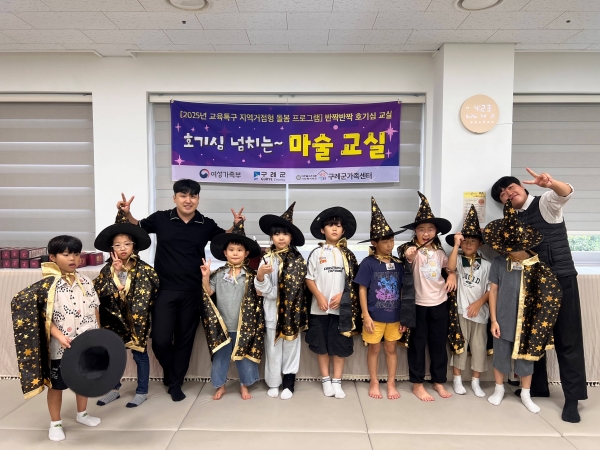 구례군, 교육발전특구 시범사업 ‘반짝반짝 호기심 교실’ 운영 [PEDIEN] 전남 구례군은 지난해 8월 개관한 구례행복가족복합센터에서 영유아 및 초등학생의 돌봄 사각지대 해소를 위한 ‘반짝반짝 호기심 교실’ 이 큰 호응 속에 운영되고 있다고 밝혔다. ‘반짝반짝 호기심 교실’은 교육부의 ‘교육발전특구 시범사업’의 일환으로 관내 부족한 돌봄 인프라를 보완하고 지역사회와 밀접하게 연계된 서비스를 통해 부모들의 요구에 맞춘 통합 돌봄서비스를 제공하고자 기획됐다. 구례군가족센터 주관으로‘보호자와 함께하는 영유아 오감발달 교실’과 ‘초등학생 마술교실’ 2개의 프로그램이 매주 수·목요일 구례행복가족복합센터에서 운영된다. 영유아 오감발달 교실은 8개월부터 22개월 영유아를 대상으로 오감놀이를 통해 인지 능력과 대·소근육 발달을 돕고 마술교실은 초등학생의 창의력 향상과 또래 간 사회성 증진에 기여해 부모와 아이 모두 높은 만족도를 보이며 활발히 참여하고 있다. 이외에도 구례군은 교육발전특구 시범사업으로 다함께돌봄센터에서의 초등학생 대상 토요돌봄, 어린이집 6개소의 유보공동교육 과정 운영 지원을 하고 있다. 군 관계자는 “아이키우기 좋은 구례를 만들기 위해 다양한 돌봄 프로그램을 운영할 수 있도록 노력하겠다”고 전했다. -