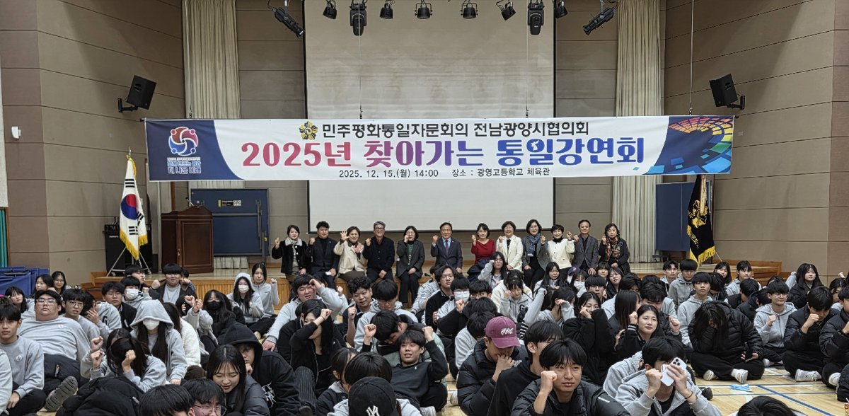 민주평통 전남광양시협의회, ‘2025년 찾아가는 통일강연회’개최 (광양시 제공) [PEDIEN] 민주평화통일자문회의 광양시협의회가 광영고등학교에서 '2025년 찾아가는 통일강연회'를 개최하며 학생들과 평화통일에 대한 의미를 되새기는 시간을 가졌다.이날 강연회에는 광영고 학생 220여 명과 민주평통 자문위원들이 참석하여 북한 사회에 대한 이해를 높이고 통일의 중요성을 공감하는 뜻깊은 시간을 보냈다.강연은 유현주 강사가 맡아 '북한 사회 이해와 통일 준비'라는 주제로 진행되었다. 유 강사는 북한 사회의 실생활과 사회 구조를 학생들의 눈높이에 맞춰 설명하며 큰 호응을 얻었다.특히 유 강사는 자신의 어린 시절과 탈북 경험, 그리고 대한민국 정착 이후 겪었던 어려움과 극복 과정을 진솔하게 이야기하며 학생들에게 깊은 인상을 남겼다. 학생들은 강연을 통해 북한과 통일 문제에 대해 더욱 현실적으로 접근할 수 있게 되었다.강연 후 학생들은 한반도 통일의 필요성에 대해 진지하게 고민하고 미래세대으로서 자신들이 해야 할 역할에 대해 생각해보는 시간을 가졌다. 학생들은 통일 문제를 더 이상 먼 미래의 이야기가 아닌, 현재 관심을 가지고 참여해야 할 과제로 인식하게 되었다고 소감을 밝혔다.박노신 민주평통 광양시협의회장은 “평화통일은 우리 모두가 함께 고민하고 실천해야 할 과제”라며 “이번 강연회가 학생들이 평화통일의 중요성을 이해하는 계기가 되었기를 바란다”고 말했다.또한 박 회장은 “학생들이 분단의 아픈 역사를 기억하고 남북 평화통일을 이끌어갈 책임 있는 미래세대로 성장해주기를 기대한다”고 덧붙였다. -