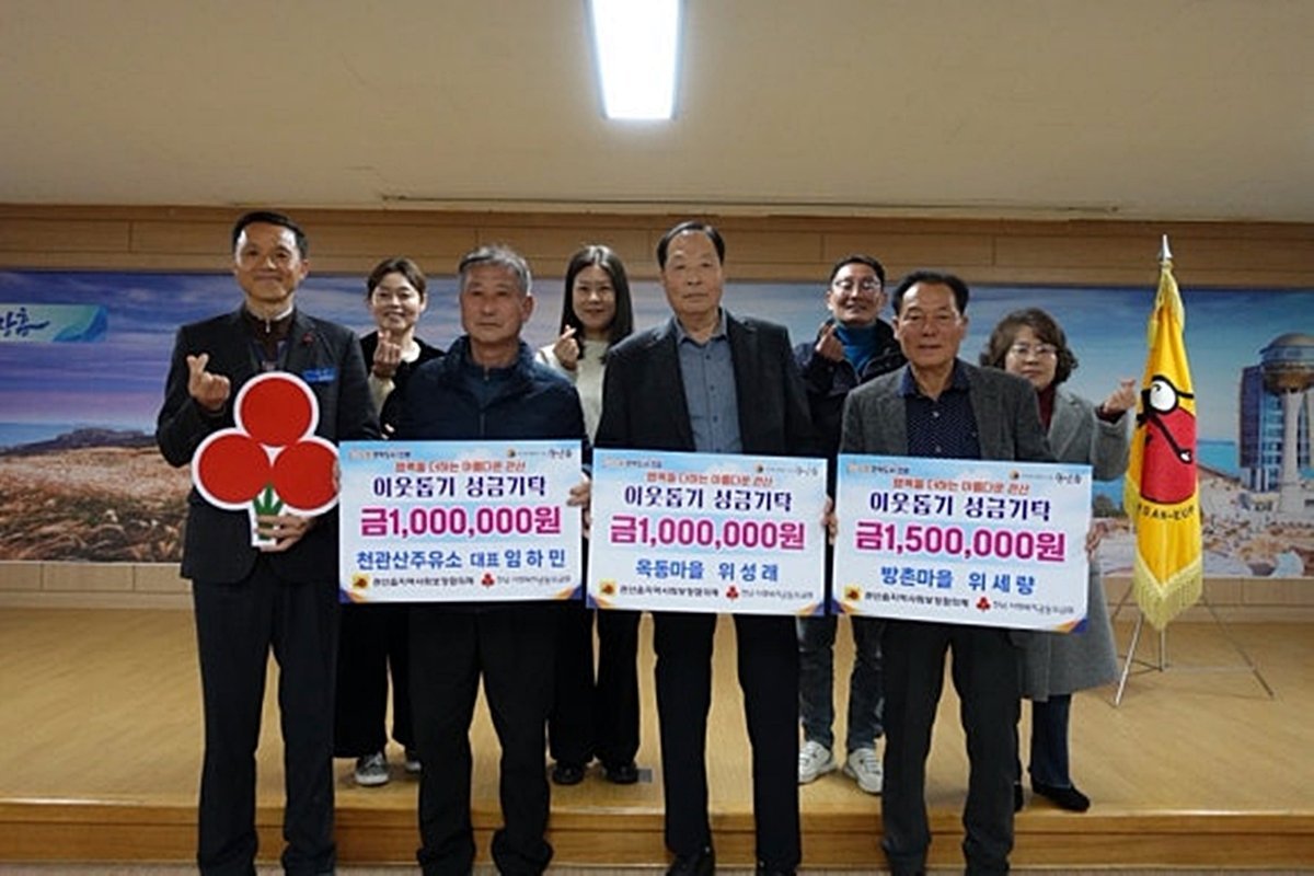 관산읍 기탁식 장흥군 제공 [PEDIEN] 장흥군 관산읍에 연말을 맞아 어려운 이웃을 돕기 위한 따뜻한 손길이 이어지고 있다.옥동마을 위성래 씨와 임하민 씨, 방촌마을 위세량 씨는 지난 18일 관산읍에 성금 350만 원을 기탁하며 지역 사회에 온정을 더했다. 이 성금은 관내 어려운 이웃들을 위해 사용될 예정이다.위성래 씨는 100만 원, 임하민 씨는 100만 원, 위세량 씨는 150만 원을 기부했다. 특히 위세량 씨는 매년 백미와 성금을 꾸준히 기부하며 나눔을 실천하고 있으며, 위성래 씨 또한 2023년부터 이웃사랑 성금 기탁에 동참하고 있다.임하민 씨는 “고향을 사랑하는 마음으로 준비한 성금이 조금이나마 따뜻한 사회를 만드는 데 기여하길 바란다”고 소감을 밝혔다.유양선 관산읍장은 “어르신들이 솔선수범하여 어려운 이웃을 돕는 모습에 깊이 감사드린다”며, “기탁자들의 소중한 뜻에 따라 지원이 필요한 이웃과 사업을 적극적으로 발굴하고 투명하게 추진하여 나눔의 가치가 지역 사회 곳곳에 전달되도록 노력하겠다”고 말했다.관산읍은 연말연시를 맞아 계속되는 성금과 물품 기탁을 통해 복지 사각지대를 해소하고 취약계층을 지원하며, 따뜻한 공동체 문화 확산에 힘쓸 계획이다. -