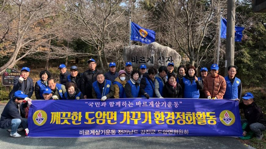 우리지역 명품공원, 도암 석문공원 환경정화 활동 (강진군 제공) [PEDIEN] 강진군 도암면바르게살기위원회가 지난 17일 도암 석문공원에서 주민과 방문객들에게 쾌적한 환경을 제공하기 위해 환경정화활동을 실시하고 또한 어르신들의 교통 안전을 위해 안전교통 캠페인을 실시했다.이날 활동에는 바르게살기위원회 회원 40여 명이 참여해 공원 곳곳에 버려진 쓰레기를 줍고, 담배 꽁초와 잡초 제거 등에 참여해 구슬땀을 흘렸다.특히 다가오는 연말·연시를 앞두고 주민과 관광객이 증가할 것으로 예상됨에 따라 도암석문공원을 중심으로 집중 정화활동을 펼쳐 쾌적하고 청결한 공원 환경을 조성했다.김동기 도암면바르게살기위원회 위원장은 “연말을 맞아 지역을 찾는 주민과 방문객들에게 깨끗하고 편안한 환경을 제공하기위해 회원들이 자발적으로 참여했다”며 “앞으로도 도암면의 지역 환경 개선과 공동체 발전을 위한 봉사활동을 꾸준히 이어가겠다”고 밝혔다.도암면바르게살기위원회는 평소에도 불우이웃돕기 성금 기탁, 관내 경로당 위문, 마을 환경정비 등 다양한 봉사활동을 통해 지역사회의 나눔과 화합 실천에 앞장서고 있다. -
