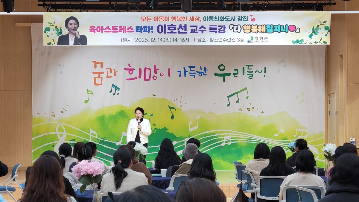 강진군, 이호선 교수 초청 ‘육아 공감 토크콘서트’성료 (강진군 제공) [PEDIEN] 강진군이 지난 14일 강진군청소년수련관에서 관내 초등학생 이하 양육 부모를 대상으로 육아토크콘서트 ‘다 행복해질지니’를 개최했다.이번 행사는 아동친화도시 강진 조성의 일환으로, 부모와 아이가 함께 행복한 육아 환경을 만들고 아동의 권리에 대한 이해를 높이고 육아 과정에서 겪는 스트레스와 고민을 나누며 공감과 소통을 통해 위로받을 수 있는 시간이 마련됐다.특히 이날 행사에는 육아·가족 상담 분야의 전문가로 잘 알려진 이호선 교수가 강연자로 초청됐다.이 교수는 육아토크콘서트를 통해 양육 과정에서의 어려움과 부모의 감정 관리, 가족 간 소통의 중요성 등에 대해 현실적인 조언을 유쾌하고 통쾌하게 강연했다.또한 양육 스트레스 해소를 주제로 한 강연과 공감 토크, 사전 신청자를 대상으로 한 육아 고충 상담이 진행되었다.강연이 끝난 후에는 부모님들의 힐링타임으로 마카롱 만들기, 인형 키링 만들기, 오일 미스트 만들기 등 참여할 수 있는 체험 프로그램이 운영됐다.강연에 참석한 한 참여자는 “가슴에 묵혀있던 체증이 확 내려가는 느낌이었다. 이렇게 좋은 강의를 눈앞에서 들을 수 있어서 좋았다”며 “앞으로 육아에 지친 부모들을 위한 프로그램들이 꾸준히 이어졌으면 한다”고 말했다.김수진 군민행복과장은 “이번 육아토크콘서트는 단순한 강연이 아니라 부모가 웃고 공감할 수 있는 소통의 자리”라며 “육아로 지친 부모들이 잠시나마 위로를 받고, 아이와 함께 행복한 추억을 만드는 시간이 되길 바란다”고 말했다.한편 강진군은 앞으로도 모든 아동이 행복하게 성장할 수 있는 환경 조성을 목표로, 아동권리 교육과 가족 친화 프로그램을 지속적으로 확대해 나갈 계획이다. -