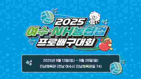 여수시, ‘2025 여수·NH농협컵 프로배구대회’ 개최…13일 개막 [PEDIEN] ‘2025 여수·NH농협컵 프로배구대회’ 가 오는 13일 여수 진남체육관에서 개막해 보름간 열전에 돌입한다. 이번 대회는 9월 13일부터 20일까지 남자부 경기가, 이어 21일부터 28일까지는 여자부 경기가 펼쳐진다. 남자부는 프로 7개 팀과 태국 초청팀 나콘랏차시마가 참가해 총 8개 팀이 경쟁하며 여자부도 프로 7개 팀과 베트남 초청팀 득지앙이 함께해 총 8개 팀이 우승컵을 놓고 치열한 승부를 벌인다. 대회는 남녀 각각 A조와 B조로 나뉘어 조별리그 예선을 치른 뒤 상위 2개 팀이 준결승에 진출해 결승전을 치르는 방식으로 운영된다. 개막 경기는 오는 13일 오후 1시 30분, 지난해 남자부 우승팀인 현대캐피탈과 OK저축은행의 맞대결로 시작된다. 입장권은 경기일 기준 5일 전 오전 11시부터 한국배구연맹 공식 누리집에서 예매할 수 있으며 현장 구매도 가능하다. 시 관계자는 “여수에서 개최되는 이번 대회가 배구 팬들과 시민들에게 특별한 즐거움을 선사하길 바란다”며 “전국적인 관심을 받는 이번 스포츠 대회를 성공적으로 치러 다가올 2026여수세계섬박람회 준비에도 힘을 더하겠다”고 밝혔다. -