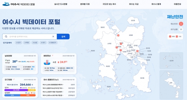 여수시, ‘빅데이터 포털’ 9월 3일부터 정식 서비스 개시 [PEDIEN] 여수시는 시민 편의성 향상과 과학적 행정 구현을 위해 구축한 '여수시 빅데이터 포털'을 9월 3일부터 정식 개시한다. 시는 이번 포털 구축을 위해 공공데이터포털, 국가통계포털 등 22개 시스템과 연계해 300여 종의 데이터를 수집·가공했으며 이를 통해 행정 데이터의 전문성과 실용성을 크게 높였다. 포털의 주요 기능은 여수시의 인구, 교통, 환경, 재난 등 주요 도시지표를 실시간으로 수집해 지도와 차트 등 시각화 자료로 제공하는 것이다. 시민들은 지역별 인구 변화 추이와 다양한 통계 정보를 직관적으로 확인할 수 있다. 특히 재난·안전 정보와 대기질 현황 등 시민 안전과 직결되는 데이터는 실시간으로 제공돼 시민들이 신속히 안전 정보를 확인하고 대응할 수 있도록 지원한다. 또한 PC와 모바일 환경 모두에 최적화된 반응형 웹 서비스로 구현돼 언제 어디서나 편리하게 이용할 수 있으며 여수시 누리집을 통해서도 접속할 수 있다. 시 관계자는 "이번 빅데이터 포털 구축을 통해 시민들이 여수시의 다양한 현황을 손쉽게 파악할 수 있게 됐다"며 "데이터에 기반한 과학적 정책 수립으로 행정 서비스 질을 한 단계 높일 수 있을 것"이라고 설명했다. 이어 "앞으로도 지속적인 데이터 발굴과 시스템 고도화를 추진해 시민 편의를 높이고 데이터 기반의 미래 예측형 스마트 행정을 구현해 나가겠다"고 덧붙였다. -