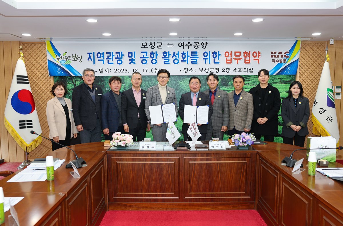 보성군–여수공항, 업무협약 체결 (보성군 제공) [PEDIEN] 보성군이 여수공항과 손을 잡고 관광 활성화에 나선다.보성군은 지난 17일 여수공항과 '지역 관광 활성화 및 공항 이용 확대를 위한 업무협약'을 체결했다고 밝혔다. 이번 협약은 보성군의 풍부한 관광 자원과 여수공항의 항공 교통망을 연계하여 시너지 효과를 창출하는 데 목적을 두고 있다.협약식에는 김철우 보성군수와 하정인 여수공항장을 비롯한 관계자들이 참석하여 남해안 관광권 연계 및 협력 사업 추진에 대한 의지를 다졌다. 양 기관은 이번 협약을 통해 관광객 유치 경로를 다각화하고, 남해안 관광권과 연계한 체류형 관광 기반을 확충할 계획이다.주요 협약 내용은 여수공항과 보성 관광 자원 연계 홍보 및 공동 마케팅, 공항 이용객 대상 보성 관광 콘텐츠 및 특산물 홍보, 항공·관광 연계 프로그램 및 패키지 상품 개발, 지역 축제·행사와 공항 홍보 기반 연계 활용 등이다.보성군은 율포솔밭해수욕장, 보성차밭, 벌교갯벌 등 다양한 관광 자원을 보유하고 있어 매년 많은 관광객이 찾고 있다. 이번 협약을 통해 여수공항을 활용한 관광객 유입을 확대하고, 남해안 대표 관광지로 도약한다는 목표다.여수공항 역시 지역 관광 자원과 연계한 프로그램을 확대하여 이용객 증가와 공항 활성화에 긍정적인 영향을 미칠 것으로 기대하고 있다. 양 기관의 협력이 지역 경제 활성화에 기여할 수 있을지 주목된다. -
