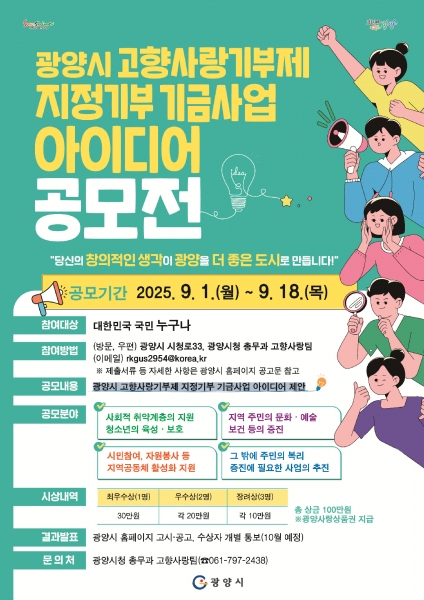 광양시, 고향사랑기부제 지정기부 기금사업 아이디어 공모전 실시