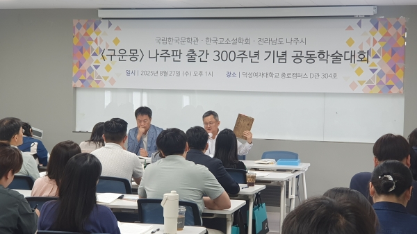 300년전 한국 최초의 대중소설 나주에서 출판되다 [PEDIEN] 소설 구운몽 나주판 발간 300주년을 맞아 한국문학의 뿌리를 기리는 기념행사에 서울에서 성황리에 열리고있다. 나주시는 최근 서울 덕성여대에서 ‘구운몽 나주판 출간 300주년 학술대회’ 가 열렸다고 1일 밝혔다. 학술대회와 특별전시를 통해 나주판 구운몽의 역사적 의미를 되새기며 문학의 미래를 함께 조망했다. 조선시대부터 현대까지 꾸준히 사랑받아온 국민소설 구운몽은 1687년 창작된 이후 필사본으로 전해지다 1725년 나주에서 목판본으로 출간되며 대량 보급이 시작됐다. 이를 계기로 한국 최초의 본격적인 대중, 상업소설이 나주에서 탄생하게 됐다. 정병설 서울대 교수는 기조강연에서 “나주판 구운몽 발간으로 한국 문학사에 대중소설 시장이 열렸다”며 “지방에서도 우리 문학사의 큰 변화를 만들어낼 수 있음을 보여준 역사적인 사건”이라고 강조했다. 또 “당시 나주목사 정각선의 집안 배경과 고려 시대부터 축적된 출판 인프라가 이러한 역사적 출판을 가능하게 했다”고 설명했다. 같은 날 탑골미술관에서는 특별전시 ‘꿈으로 지은 집’ 이 개막됐다. 전시에서는 1725년 나주에서 발간된 구운몽 목판본을 비롯해 이광수, 최인훈 등 근현대 문학작품 속 ‘꿈’의 서사를 재조명했다. 강상구 나주부시장은 축사에서 “조선시대부터 오늘날까지 꾸준히 읽히는 구운몽이 300년 전 나주에서 발간됐다는 사실은 큰 자부심”이라며 “나주가 한국문학 발전에 지속적으로 기여할 수 있도록 노력하겠다”고 말했다. 구운몽 나주판 발간 300주년 특별전시는 오는 9월 20일까지 열리며 학술대회 자료집은 백호문학관 홈페이지에서 내려받을 수 있다. -