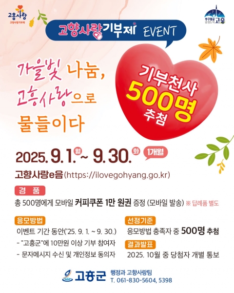 고흥군, ‘가을빛 나눔’ 고향사랑기부제 이벤트 추진