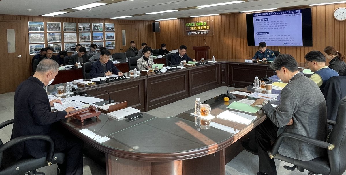 전남자치경찰위 정기회의 [PEDIEN] 전라남도자치경찰위원회가 연말연시 특별 방범 대책과 겨울철 교통 관리 대책을 강화한다고 밝혔다.최근 정기회의를 통해 관련 대책을 논의하고, 범죄 예방과 시민 불편 최소화에 집중할 것을 강조했다. -