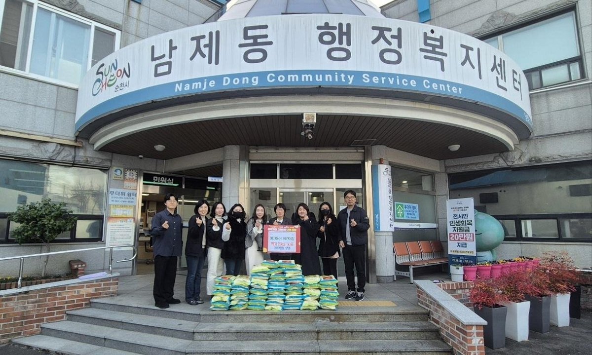 신대중흥8차 에코둥이 어린이집, 남제동 취약가정에 100만원 상당 쌀 기부 (순천시 제공)
