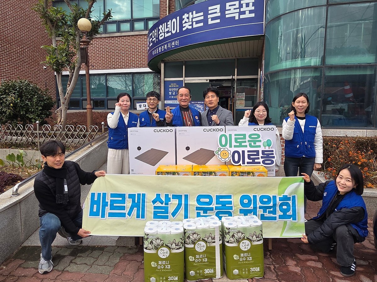 이로동 바르게살기위원회, 연말 맞아 따뜻한 나눔 실천 (목포시 제공) [PEDIEN] 이로동 바르게살기위원회가 연말을 맞아 지역 내 어려운 이웃을 위한 따뜻한 나눔을 실천했다.지난 16일, 위원회는 취약계층 3세대를 직접 방문하여 탄소 매트, 계절 과일, 생필품 등 총 90만원 상당의 물품을 전달하며 훈훈한 정을 나눴다.이번 나눔 활동은 추운 겨울, 난방비 부담을 느끼는 가구와 생필품 부족으로 어려움을 겪는 이웃들의 생활 안정에 실질적인 도움을 주기 위해 마련됐다. 위원들은 각 가정을 방문해 물품을 전달하고, 안부를 확인하며 생활 속 불편함은 없는지 세심히 살폈다.김환석 바르게살기위원회 위원장은 “작은 정성이지만, 연말을 맞아 이웃들에게 따뜻한 위로와 힘이 되기를 바란다”며 “앞으로도 이웃과 함께하는 따뜻한 이로동을 만들어가는 데 최선을 다하겠다”고 밝혔다.차태명 이로동장은 “이번 나눔은 단순한 물품 전달을 넘어, 이웃 간 서로를 살피고 정을 나누는 소중한 시간이었다”며 지역 공동체의 가치를 되새기는 계기가 되었다고 평가했다.