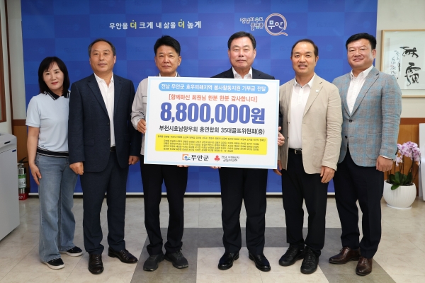 부천시 호남향우회 총연합회 35대 골프위원회, 무안군 지원 성금 기탁 [PEDIEN] 전남 무안군은 25일 부천시 호남향우회 총연합회 35대 골프위원회로부터 집중호우로 어려움을 겪고 있는 지역 내 주민을 위한 성금 880만원을 기탁받았다. 이날 기탁식은 김산 군수, 안병일 부천시 호남향우회 총연합회 35대 골프위원장 및 임원진 등이 참석한 가운데 진행됐으며 이번 성금은 갑작스러운 집중호우로 어려움을 겪은 무안군 지역의 주민들에게 따뜻한 위로의 마음을 전하기 위해 회원들의 정성을 모아 마련됐다. 안병일 위원장은 “작은 정성이지만, 무안군민들께 조금이나마 도움이 되길 바란다”며 “앞으로도 지역사회를 위한 나눔활동을 꾸준히 이어가겠다”고 전했다. 김산 군수는 “무안군민들을 위해 따뜻한 마음을 전해 주신 부천시 호남향우회 골프위원회에 진심으로 감사드린다”며 “전달받은 성금은 전남사회복지공동모금회를 통해 주민들의 일상생활 지원에 소중히 사용하겠다”고 말했다. 한편 부천시 호남향우회 총연합회 제35대 골프위원회는 총회장배 골프대회 개최 등 회원 간 친목 도모뿐 아니라 호남 지역 사회공헌활동을 꾸준히 이어오고 있으며 앞으로도 다양한 나눔과 연대활동을 지속적으로 추진할 계획이다. -