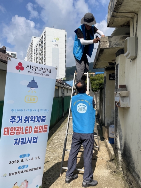 나주시 금남동지사협, 안전취약가구에 태양광 LED 실외등 지원 [PEDIEN] 전라남도 나주시 금남동지역사회보장협의체는 지역특화사업 일환으로 지난 22일부터 후미진 골목과 어두운 실외 환경에서 거주하는 노인, 장애인 가구 등 30가구에 태양광 LED 실외등 설치 지원사업을 추진한다고 밝혔다. 태양광 LED 실외등은 별도의 전기설비 없이 주택 현관이나 벽체 내·외부에 설치해 야간 안전과 편리한 생활을 돕는다. 특히 이번 사업은 노인, 장애인 등 취약가구 외 지난 4월부터 금남동 지사협과 금남동 복지기동대가 중장년 1인 가구 전수조사를 통해 직접 찾아낸 안전 취약가구를 포함해 대상자를 선정하고 설치·지원까지 함께하며 민·관 협치의 의미를 더했다. 허현숙 민간위원장은 “아직도 어두운 골목이 도시 곳곳에 있고 그 안에는 도움이 필요한 이웃들이 많이 계신 것을 확인하고 지사협 위원, 복지기동대원들과 함께 안전 취약가구에 밝은 빛을 선물하게 되어 기쁘게 생각하며 앞으로도 지역복지활동가와 함께 다양한 지역특화사업을 추진해 나가겠다”고 말했다. 김화영 금남동장은 “폭염이 계속되는 더운 날씨에도 이웃의 불편함을 해소하기 위해 함께해 주신 허현숙 위원장을 비롯한 협의체 위원님과 금남동 복지기동대원들께 감사드리며 앞으로도 민관이 함께 찾고 함께 돕는 따듯한 복지공동체 금남동이 되도록 최선을 다하겠다”고 말했다. -