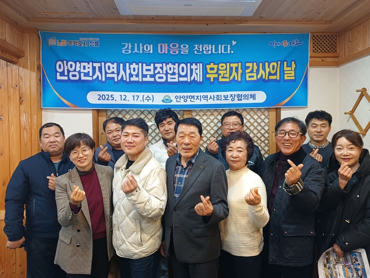 장흥 안양면지역사회보장협의체, 후원자 감사의 날 개최 (장흥군 제공) [PEDIEN] 장흥군 안양면지역사회보장협의체가 지역 복지 증진에 기여한 후원자들을 초청, 감사의 마음을 전하는 뜻깊은 자리를 마련했다.이번 행사는 안양면 지역 사회의 복지 향상을 위해 꾸준히 나눔을 실천해 온 후원자들에게 감사를 표하고, 협의체의 사업 추진 성과를 공유하기 위해 기획됐다.행사에서는 2025년 주요 복지사업 추진 현황과 함께, 후원금이 지역 내 저소득 취약계층 및 복지 사각지대 해소를 위해 어떻게 사용되었는지 상세히 보고했다. 후원자들은 협의체의 투명한 운영에 깊은 신뢰를 보냈다.참석자들은 자유로운 분위기 속에서 지역 복지 발전을 위한 다양한 의견을 교환하며, 지속적인 협력 방안을 모색했다. 한 후원자는 작은 정성이 지역 사회에 큰 도움이 되는 것을 확인하며 큰 보람을 느꼈다고 소감을 밝혔다.백수영 안양면지역사회보장협의체 위원장은 "후원자들의 소중한 나눔이 실질적인 복지 성과로 이어지고 있다"며 감사를 표하고, "투명한 사업 추진과 지속적인 소통을 통해 신뢰받는 협의체가 되도록 노력하겠다"고 약속했다.안양면지역사회보장협의체는 앞으로도 후원자들과의 굳건한 협력 관계를 바탕으로, 지역 주민들의 복지 증진을 위해 더욱 힘쓸 계획이다. -