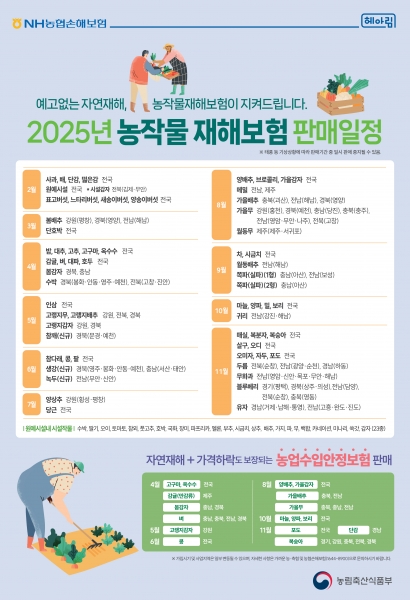 메밀은 농작물 재해보험만 가입할 수 있으며 가을양배추, 가을배추, 가을무는 두 보험 중 선택해 가입할 수 있다.