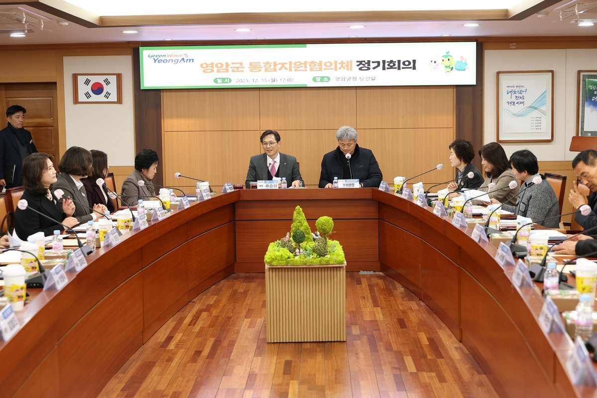 영암군 통합지원협의체 정기회의 [PEDIEN] 영암군이 15일 군청에서 ‘통합지원협의체’ 정기회의를 열어 위원 30명에게 위촉장을 수여하고, 영암군민이 통합돌봄 서비스를 사는 곳에서 받는 등의 성과 목표를 담은 내년 통합돌봄사업 실행계획을 심의·의결했다.영암군은 ‘모두에게 힘이 되는 따뜻한 돌봄, 영암-올케어’를 비전으로 돌봄이 필요한 군민이 살던 곳에서 안전하고 건강한 삶을 이어갈 수 있도록 의료·요양·주거·일상생활 지원을 통합 연계하는 영암형 통합돌봄을 추진하고 있다.대상자 발굴부터 통합 판정, 지원회의, 서비스 제공, 모니터링까지 돌봄의 전 과정을 한 흐름으로 묶어 서비스가 끊기지 않도록 운영하는 체계 구축이 목표다.이를 뒷받침하는 영암군 통합지원협의체는 행정·보건·의료·복지·주거 등 분야 전문가로 구성돼 △지역 통합돌봄 계획 수립·평가 △시책 자문·조정 △관계기관 연계·협력 △민·관 자원 발굴 및 협업 강화 등을 맡는다.이날 협의체 부위원장으로 이삼행 영암지역자활센터장이, 위원으로 김문수 영암군의사회장, 장승희 동아보건대 교수 등이 위촉을 받았다.이어진 정기회의에서 협의체 위원들은 영암군의 ‘2026년 통합돌봄사업 실행계획’ 최종 심의·의결을 위해 다양한 의견을 제시했다.심의·의결된 실행계획에는 ‘통합돌봄 신청자 재가 거주율 80% 이상 달성’ 등 성과 목표와 노인·장애인·퇴원환자 우선 지원 방향 등이 담겼다.우승희 영암군수는 “통합돌봄이 사업을 넘어 영암에서 영암군민이 살아가는 방식으로 자리잡게 만들자. 통합돌봄지원협의체를 중심으로 지역 돌봄 자원을 유기적으로 연결해 영암군민의 더 나은 생활을 위해 노력하자”고 강조했다. -