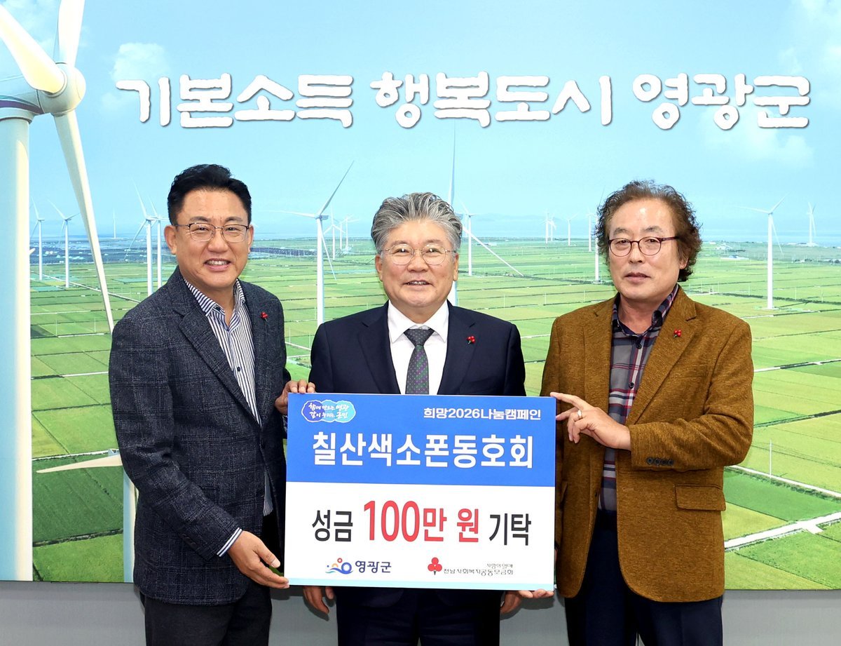 연말 성금 기탁 및 장학 기금 기부 [PEDIEN] 칠산색소폰동호회는 회원 14명이 매주 숲쟁이꽃동산 상설무대에서 진행하는 버스킹 공연을 통해 마련한 수익금 100만 원을 희망 나눔캠페인 이웃돕기 성금으로 영광군에 기부했다.칠산색소폰동호회는 2022년부터 정기적인 버스킹 공연을 이어오며, 공연을 통해 얻은 수익을 지역의 어려운 이웃을 위해 꾸준히 기부해 오고 있다. 단순한 문화 활동을 넘어, 음악을 매개로 한 나눔 실천으로 지역사회에 따뜻한 감동을 전하고 있다.특히 숲쟁이꽃동산 상설무대에서 펼쳐지는 버스킹 공연은 군민들에게는 일상 속 문화 향유의 기회를 제공하고, 동시에 공연 수익이 지역 나눔으로 이어지는 선순환 구조를 만들어 의미를 더하고 있다.박래종 회장은 “회원들의 작은 재능과 정성이 모여 지역사회에 보탬이 될 수 있어 뜻깊다”라며 “앞으로도 음악을 통해 군민과 소통하고, 나눔을 실천하는 동호회가 되도록 노력하겠다”라고 말했다.사회복지과 관계자는 “버스킹 공연이라는 문화 활동이 이웃사랑 실천으로 이어지고 있다는 점에서 더욱 의미가 크다”라며 “꾸준한 나눔으로 지역사회에 희망을 전해주신 칠산색소폰동호회 회원 여러분께 깊이 감사드린다”라고 전했다.한편, 기탁된 성금은 영광곳간 및 희망 나눔캠페인을 통해 관내 취약계층과 복지 사각지대 이웃을 위해 소중히 사용될 예정이다. -
