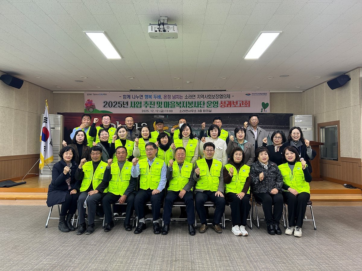 소라면 지역사회보장협의체, 2025년 추진성과 보고회 개최 (여수시 제공) [PEDIEN] 여수시 소라면 지역사회보장협의체가 지난 12일, 소라면사무소에서 2025년 운영 성과보고회를 열었다. 협의체 위원과 마을복지 봉사단 52명이 참석하여 한 해 동안의 노고를 격려하고, 주요 성과를 공유하는 시간을 가졌다.협의체는 연합모금 활동을 통해 4480여만 원을 모금, 복지 사각지대에 놓인 70세대를 지원했다. 위기가구 긴급 지원, 장학금 전달, 맞춤형 꾸러미 지원 사업 등을 통해 어려움을 겪는 이웃들에게 실질적인 도움을 제공했다.소라면 마을복지 봉사단은 경로식당 급식 봉사, 취약계층 건강 영양식 지원, 농어촌 방충망 교체, 김치 나눔, 이미용 봉사, 감자 재배 등 6개 사업을 추진했다. 이를 통해 3900여 명의 주민들에게 다양한 복지 서비스를 제공하며 따뜻한 지역 사회를 만들어가는 데 기여했다.이영진 민간위원장은 협의체 위원과 봉사단의 헌신적인 노력에 감사를 표하며, 앞으로도 복지 사각지대 발굴과 특화 사업을 통해 주민 복지 향상에 최선을 다할 것을 다짐했다. 박홍삼 소라면장은 봉사자들의 노고에 감사하며, 지역민들의 따뜻한 마음과 정성을 바탕으로 온정 넘치는 소라면을 만들어가겠다고 밝혔다.소라면 지역사회보장협의체는 내년에도 취약계층을 위한 새로운 사업을 발굴, 추진하여 복지 사각지대 해소에 더욱 힘쓸 계획이다. -