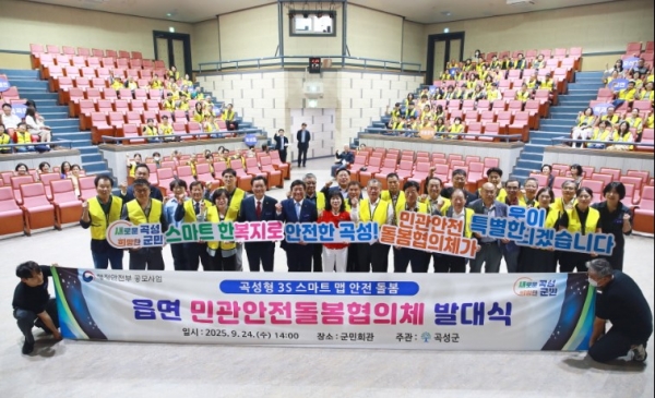 전남 곡성군, 읍면 민관안전돌봄협의체 발대식 개최 [PEDIEN] 전남 곡성군이 지난 24일 곡성군 군민회관 열린마당에서 ‘읍면 민관안전돌봄협의체 발대식’을 개최했다. 취약노인 안전관리 체계 구축을 위해 열린 이번 발대식에는 조상래 곡성군수와 강덕구 군의회 의장을 비롯해 군의원, 11개 협의체 위원장과 위원 200여명이 함께해 뜻을 모았다. 곡성군은 지난 4월 행정안전부 공모사업인 ‘곡성형 3S 스마트 맵 안전 돌봄’에 선정됐다. 이에 따라 군에서는 취약노인 700가구의 안전 확보를 위한 ‘읍면 민관안전돌봄협의체’를 구성했다. 지역사회보장협의체, 마을 이장, 우리동네복지기동대, 부녀회, 청년회 등 다양한 사회단체가 참여해 협의체가 꾸려졌다. 현재 곡성군 읍면 민관안전돌봄협의체는 11개 대표 협의체와 총 2,195명의 회원으로 구성돼 있다. 앞으로 협의체는 취약계층 노인 안전관리와 돌봄, 계절별 재난 대비 예찰, 행사장 안전 점검, 복지사각지대 및 위기가구 발굴, 지역 안전 의제 발굴·건의 등의 역할을 수행하게 된다. 특히 이들은 곡성소방서 119생활안전순찰대와 노인맞춤돌봄서비스 수행기관과 연계해 더 다양하고 강화된 취약노인 안전·복지서비스를 제공할 계획이다. 군 관계자는 “취약 어르신의 안전과 행복을 위해 민관 안전돌봄협의체 활동에 기꺼이 함께해 주신 데 깊이 감사드린다 군에서도 위원분들이 활동하시는 데 불편함이 없도록 최선을 다해 지원하겠다”고 말했다. -