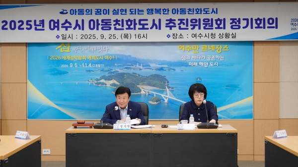 여수시, 2025년 아동친화도시 추진위원회 정기회의 개최 [PEDIEN] 여수시는 지난 25일 시청 상황실에서 2025년 여수시 아동친화도시 추진위원회 정기회의를 열고 유니세프 아동친화도시 재인증 준비에 본격적으로 돌입했다. 이번 회의에서는 2027년 9월 만료 예정인 유니세프 아동친화도시 인증 재획득을 위해 2026년 표준조사, 시민·아동 의견 수렴, 4개년 추진계획 수립 등 구체적인 절차를 차질 없이 진행해 나가기로 했다. 재인증은 단순히 명칭을 유지하는 절차가 아니라 여수시가 아동권리 보장과 아동친화 환경 조성을 성실히 실천해 왔음을 객관적으로 검증받는 과정으로 정책의 연속성과 행정의 신뢰도를 높이는 중요한 계기가 될 전망이다. 또한 위원회는 아동친화도시 조성에 대한 시민적 공감대를 확산하기 위해 ‘서로를 지켜주는 마음’을 주제로 제2회 그림 공모전을 추진하기로 했다. 공모전은 학교폭력 없는 교실, 이웃 간의 배려, 교통안전 등 아동이 바라는 안전하고 행복한 도시의 모습을 표현하는 장으로 입상작은 시청과 유관기관에 전시해 시민들과 공유할 예정이다. 민간위원장인 정윤희 순천제일대 교수는 “오늘 논의가 형식에 그치지 않고 아이들과 시민 모두가 체감할 수 있는 변화로 이어지길 기대한다”고 말했다. 정기명 여수시장은 “아이들이 행복한 도시를 만드는 것이 곧 모든 시민이 행복한 여수를 만드는 길”이라며 “재인증 준비와 아동권리 보장을 위해 최선을 다하겠다”고 다짐했다. -