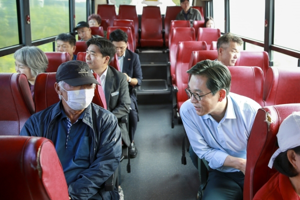 영암군, 군내버스 노선 점검으로 현장 소통행정 [PEDIEN] 영암군이 23일 추석 명절을 앞두고 현장 소통행정의 하나로 군내버스 노선 점검을 실시했다. 우승희 영암군수와 공직자 등이 함께 한 이날 점검은 오전 7시 30분, 군내버스 101번을 탑승해 진행됐다. 영암공영버스터미널에서 출발해 삼호종합버스터미널까지 약 45분간 우승희 영암군수는, 버스 탑승객들과 교통 불편 상황을 포함해 다양한 이야기를 나누며 소통하고 꾸준한 교통서비스 개선 등을 약속했다. 우승희 영암군수는 “영암군민 생활의 큰 부분을 차지하는 군내버스 운영은 현장에서 답을 찾아야 한다. 군민과 직접 소통으로 교통 불편을 줄이는 등 생활밀착형 교통복지를 실현하겠다”고 말했다. 영암군은 교통 소외지역 주민 불편 최소화, 교통약자 이동권 보장 맞춤형 대중교통 서비스 확대 등 영암군민 중심 교통행정을 실현해 나간다는 방침이다. -