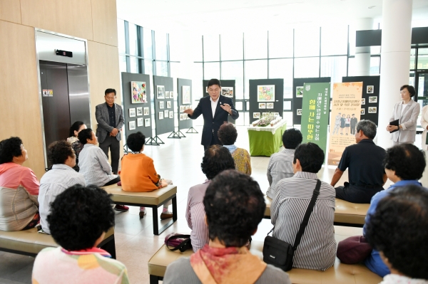 이번 전시는 치매안심마을 주민 60여명이 참여해 어르신들의 나들이 사진과 마을에 대한 기억을 담은 협동화를 감상할 수 있다.