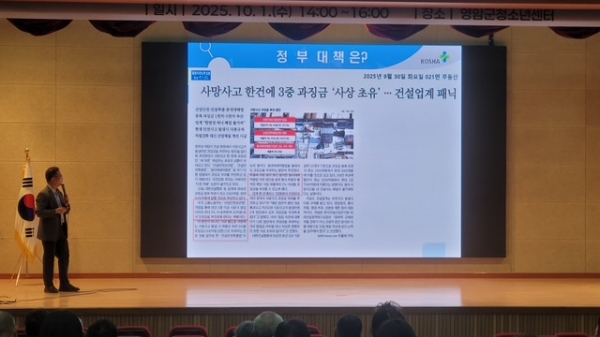 영암군, 발주공사 중대재해 예방 교육 실시 [PEDIEN] 영암군이 1일 청소년센터에서 건설·용역업체 대표자 및 현장소장 등이 참석한 가운데 ‘발주공사 중대재해 예방 교육’을 실시했다. 상반기 교육에 이은 이날 교육에서는 발주공사 현장의 중대재해 예방 및 안전관리 역량 강화를 위해 마련됐다. 교육 강사인 정효석 한국산업안전보건공단 전남지역본부 부장은, 최근 지자체 발주공사에서 발생한 안전사고 사례를 공유하고 중대재해처벌법 등 관련 법령에 대한 참석자들의 이해를 높였다. 특히 △발주시 안전관리 방안 △중대재해처벌법 △건설현장 사고사례 및 예방 대책 등을 내용으로 현장 중심 실무 노하우와 대응 전략을 전했다. 나형철 영암군 군민안전과장은 “지속적인 안전 교육과 현장 안전 점검 체계를 강화해 나가겠다 발주자·도급자 모두가 함께 안전 문화를 정착해 나가는 문화가 중요하다”고 전했다. -