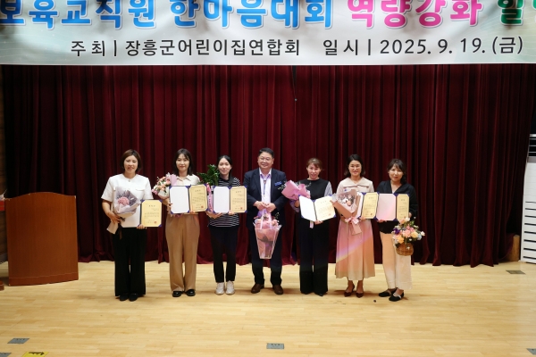 장흥군, 2025년 보육교직원 한마음대회 성료 [PEDIEN] 장흥군은 19일 청소년수련관에서 ‘2025 보육 교직원 한마음 대회’ 가 열렸다고 전했다. 이날 한마음 대회는 장흥군어린이집연합회 주관으로 보육교직원 100여명이 참석한 가운데 개최됐다. 1부 기념식에는 보육유공자 군수 표창과 축사가 진행됐고 2부에서는 힐링강연이 이어졌다. 행사에서는 보육 교직원의 노고를 위로하고 화합과 치유의 시간을 가졌다. 이맹숙 연합회 회장은 “보육교사들의 사기 진작을 위해 행사를 지원해준 장흥군에 감사드린다”며 “앞으로도 연합회는 부모들이 안심하고 자녀를 맡길 수 있는 질 높은 보육환경 조성에 최선을 다하겠다”고 말했다. 장흥군 관계자는 “보육현장에서 묵묵히 최선을 다해주는 교직원들이 있기에 지역의 미래인 아이들이 바른 인성을 기르고 건강하게 자랄 수 있다고 생각한다”며 “보육교사분들이 현장에서 열심히 일해주시는 만큼 보육환경 개선과 근무여건 개선을 위해 최선을 다하겠다”고 말했다. 한편 장흥군에서는 매년 농어촌 소규모 어린이집 인건비 추가 지원 및 찾아가는 언어치료 지원사업 등 다양한 보육 지원 정책을 추진하고 있다. -