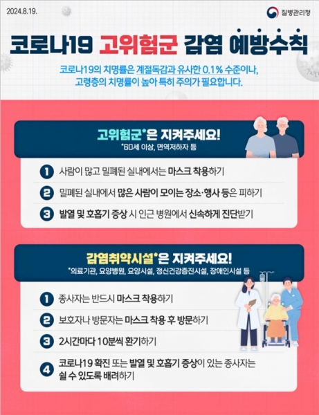 고흥군, 코로나19 유행 차단 감염 취약 시설 현장 점검 [PEDIEN] 고흥군은 코로나19 입원 환자 증가세가 지속됨에 따라, 코로나19 확산 방지와 고위험군 보호를 위해 지난 9월 4일부터 17일까지 지역 내 감염 취약 시설 현장을 점검했다고 밝혔다. 최근 병원급 표본감시 의료기관의 주간 코로나19 입원 환자 수가 10주 연속 증가하고 있으며 특히 65세 이상 고령층에서 확진 비율이 높게 나타나 고위험군의 건강 관리가 필요한 상황이다. 이번 점검은 요양시설 등 감염 취약 시설 40개소를 대상으로 △방역 수칙 준수 여부 확인 △주기적 환기·소독 여부 등 확인 △유증상자 출입 자제 △마스크 착용 권고 △개인위생 수칙 안내 △방역물품 지원 등으로 진행됐다. 또한 감염 취약 시설에서 코로나19 환자가 발생할 경우, 즉시 보고 할 수 있도록 보고 체계를 안내하고 지난 6월부터는 관내 병원급 의료기관을 대상으로 코로나19 발생 현황을 모니터링하고 있다. 군 보건소 관계자는 “9월에도 코로나19 확산세가 지속되고 있으므로 특히 어르신 등 고위험군은 사람이 많이 모이는 실내 행사 참여를 자제해 주시고 참여 시에는 마스크를 착용해 주시길 바란다”며 “환절기 코로나19 감염 예방을 위해 일상 속 호흡기 감염병 예방수칙 생활화에 군민의 적극적인 협조가 필요하다”고 당부했다. 또한 “인후통, 기침, 발열 등 코로나19 증상 발현 시 신속히 병원을 방문해 적절한 진단 및 치료를 받고 코로나19에 감염된 경우 증상이 호전될 때까지 충분히 쉴 수 있도록 직장과 단체에서도 적극적인 협조를 부탁드린다”고 덧붙였다. -