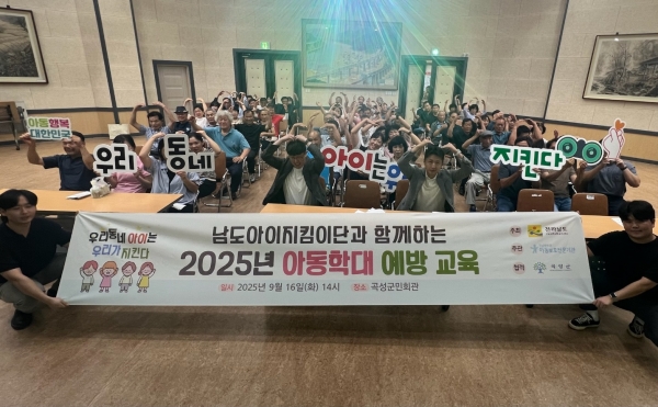 곡성군, ‘남도아이지킴이단과 함께하는 2025년 아동학대 예방 교육’ 실시 [PEDIEN] 곡성군은 지난 16일 군민회관 참여마당에서 아동 인권보호와 아동학대 예방을 위해 ‘남도아이지킴이단과 함께하는 2025년 아동학대 예방교육’을 실시했다고 전했다. 이번 교육은 지역사회 아동 보호 인식 개선과 아동학대 예방 역량 강화를 목표로 남도아이지킴이단을 대상으로 진행됐다. ‘남도아이지킴이단’은 마을 중심의 지역공동체 기반 인적 안전망으로 아동학대 위험에 처해 있는 아이들의 조기 발견과 선제적 예방 활동을 수행하는 조직이다. 곡성군은 이번 교육을 통해 학대 발생률을 낮추고 공동체 내 아동 보호 체계를 더욱 공고히 할 계획이다. 특히 일상에서 아이들의 이상 징후를 조기에 발견하고 학대 상황 발생 시 신속하게 신고 및 대응할 수 있도록, 주요 학대 사례와 신고 방법, 보호 절차 등을 중심으로 실질적인 내용들을 다뤄 남도아이지킴이단원들이 아동학대 사례에 적극 대응하고 아동학대 대응 역량을 키우는 데 중점을 두었다. 교육에 참여한 남도아이지킴이 단원은 “그동안 아동학대 뉴스는 남의 일처럼 느껴졌는데, 교육을 듣고 나니 우리 이웃 아이들이 겪을 수 있는 일이라는 생각에 마음이 무거워졌다”며“특히 실제 사례를 접해보니 학대 의심 상황을 놓치지 않도록 주변을 더 세심하게 살펴야겠다는 책임감이 생겼다”고 말했다. 또한 곡성군 관계자는 “아동학대는 특정 가정의 문제가 아니라 우리 사회 모두가 함께 풀어가야 할 과제”며 “이번 교육을 통해 남도아이지킴이단이 곡성의 아이들을 지키는 든든한 보호자 역할을 해줄 것으로 기대한다”고 밝혔다. -