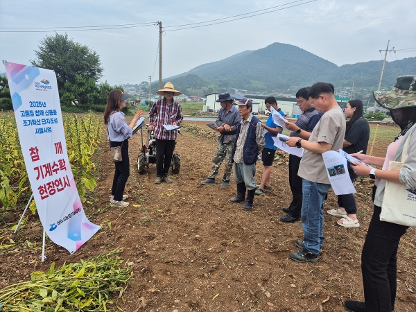 여수시, 참깨 기계수확 현장 연시회 개최 [PEDIEN] 여수시는 지난 15일 돌산읍 친환경단지에서 결속형 예취기를 활용한 참깨 기계수확 현장 연시회를 열었다. 이번 연시회는 ‘고품질 참깨 신품종 조기확산 단지조성 시범사업’의 일환으로 마련됐다. 연시회에는 지역 농업인과 관계자들이 참석해 신품종 참깨의 생육 상황과 기계수확 과정을 직접 확인했다. 현장에서는 결속형 예취기를 활용해 참깨를 일괄 수확하는 과정을 시연했으며 기존 수작업 방식보다 수확 효율성이 높고 품질 유지에도 효과적이라는 평가를 받았다. 이번 시범사업에는 기계화 적합 신품종 ‘하니올’과 초다수성·복합내병성 품종인 ‘영웅’ 이 투입됐다. 재배 전 과정에 기계화 기술을 접목해 노동력을 절감하고 고품질 참깨 생산 기반을 구축하는 것을 목표로 하고 있다. 여수시는 이번 사업을 통해 옥수수-참깨-돌산갓을 연계한 1년 3모작 작부체계를 완성하고 지역 농가의 소득 향상과 지속 가능한 농업 경쟁력 제고에 나설 계획이다. 수확된 참깨는 향후 가공 및 브랜드화를 통해 부가가치를 높일 예정이다. 여수시 관계자는 “기계화 기반 참깨 재배기술은 고령화·일손 부족 문제를 해결하고 농업 생산성을 높이는 핵심 전략”이라며 “앞으로도 다양한 신기술 보급과 현장 중심 지원을 통해 농업인의 소득 증대에 힘쓰겠다”고 말했다. -