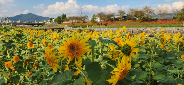 광양시, 올 추석 황금연휴에는 꽃길만 걸어요 [PEDIEN] 광양시가 백운산에서 발원한 서천변에 테디베어 해바라기, 꽃무릇, 코스모스 등이 꽃물결을 이루며 가을 정취를 한껏 물들이고 있다고 밝혔다. 테디베어 해바라기는 일반 해바라기보다 키가 작고 꽃잎이 풍성하게 겹쳐 피는 것이 특징으로 곰 인형을 닮은 데서 그 이름이 붙여졌다. 이름에 걸맞게 사랑스럽고 포근한 분위기를 풍기는 테디베어 해바라기는 곳곳에 펼쳐진 코발트색 파라솔과 어우러져 풍경을 한층 더 밝고 경쾌하게 수놓는다. 서천변 양 언덕에는 붉은 꽃무릇이 장관을 이루며 융단을 깔아놓은 듯한 신비감을 자아낸다. 꽃무릇은 잎이 없을 때 꽃이 피고 꽃이 질 때 잎이 돋아나 상사화로도 불린다. 또 서천 곳곳에는 가을의 대명사인 코스모스가 바람에 한들한들 흔들리며 꽃물결을 이룬다. 분홍, 흰색 등 갖가지 고운 빛깔로 어울려 핀 코스모스는 조화와 평화를 상징하는 꽃답게 방문객들에게 익숙한 편안함을 선사한다. 형형색색의 꽃들로 일렁이는 광양 서천의 가장 큰 매력은 백운산에서 발원해 산의 기운을 품고 유유히 흘러온 맑은 물이다. 투명한 그 냇물에 쪽빛 하늘과 뭉게구름, 노란 해바라기, 붉은 꽃무릇을 그대로 담아내 만화경을 들여다보는 듯한 새로운 풍경을 만들어낸다. 이곳에 서서 멀리 우뚝 솟은 백운산과 눈 맞추면 자연의 위대함이 주는 위로가 가슴 깊이 스며드는 감동을 느낄 수 있다. 이현주 관광과장은 “서천꽃길 주변에는 전남도립미술관과 광양예술창고 인서리공원 등 고품격 콘텐츠가 가득한 문화예술공간이 많다”며 “추석 황금연휴를 맞아 고향을 찾는 귀성객과 관광객들이 문화예술을 향유하고 가을의 향연을 만끽할 수 있는 서천꽃길을 거닐며 넉넉하고 풍성한 한가위를 보내길 바란다”고 말했다. -