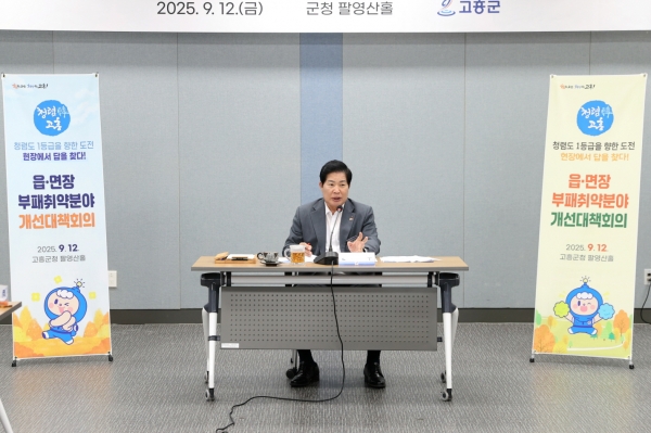 고흥군, 읍·면장과 함께 청렴도 향상 전략 모색 [PEDIEN] 고흥군은 지난 12일 군청 팔영산홀에서 ‘읍·면장 부패 취약분야 개선회의’를 개최하고 군민 청렴 체감도 향상을 위한 전략과 실행 방안을 모색했다. 이번 회의는 군수 주재로 부군수와 읍·면장들이 참석한 가운데 현장에서 발생할 수 있는 부패 취약분야를 점검하고 군민이 체감할 수 있는 청렴한 행정 구현 방안을 집중적으로 논의했다. 특히 읍·면 현장의 다양한 목소리를 듣고 친절 민원 응대, 부패 취약분야 모니터링, 맞춤형 청렴 홍보 등 실질적이고 구체적인 개선 과제가 다수 제안됐다. 군은 이번 회의에서 나온 의견들을 바탕으로 현장 중심의 청렴 정책 강화와 군민 체감형 시책 확대, 부패 취약분야 신속 대응 체계 구축 등 다양한 방안을 신속히 추진해 청렴 문화 확산과 신뢰받는 행정을 실현해 나갈 계획이다. 공영민 군수는 “청렴은 군민과의 신뢰의 핵심이며 현장 의견을 적극 반영한 실천이 무엇보다 중요하다”며 “읍·면과 협력해 청렴하고 친절한 고흥을 지속적으로 만들어 가겠다”고 말했다. -