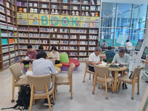 아이를 동반한 가족 단위 방문객을 위해 아동 소파와 아동도서 웹툰까지 갖춘 키즈존을 조성해 운영 중이고 시력이 좋지 않은 어르신을 위한 돋보기와 글자 크기를 키운 대활자본 도서까지 비치해 놓은 상태다.
