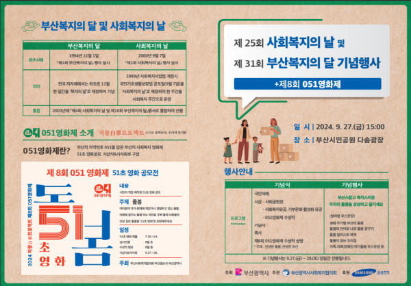 시는 정부보다 앞선 1994년부터 9월을 ‘부산복지의 달’로 지정하고 31회째 기념식을 이어오고 있으며 지난 2003년부터 ‘사회복지의 날’도 함께 기념해 행사를 개최해 오고 있다.