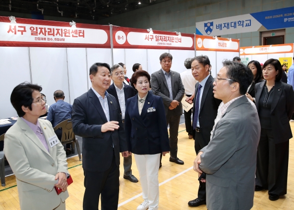 [PEDIEN] 대전 서구는 지난 2일 배재대학교 스포렉스홀에서 개최된 ‘2024년 하반기 대전 서구 굿잡 일자리박람회’ 가 700여명의 구직자가 참여한 가운데 성황리에 종료됐다고 밝혔다.