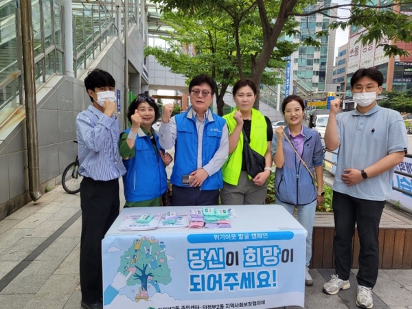 의정부2동 보건복지팀 직원들과 의정부2동 지역사회보장협의체가 함께 참여해, 복지 사각지대의 개념과 제보 방법이 담긴 안내문과 물티슈를 배부하며 적극적인 홍보 활동을 펼쳤다.